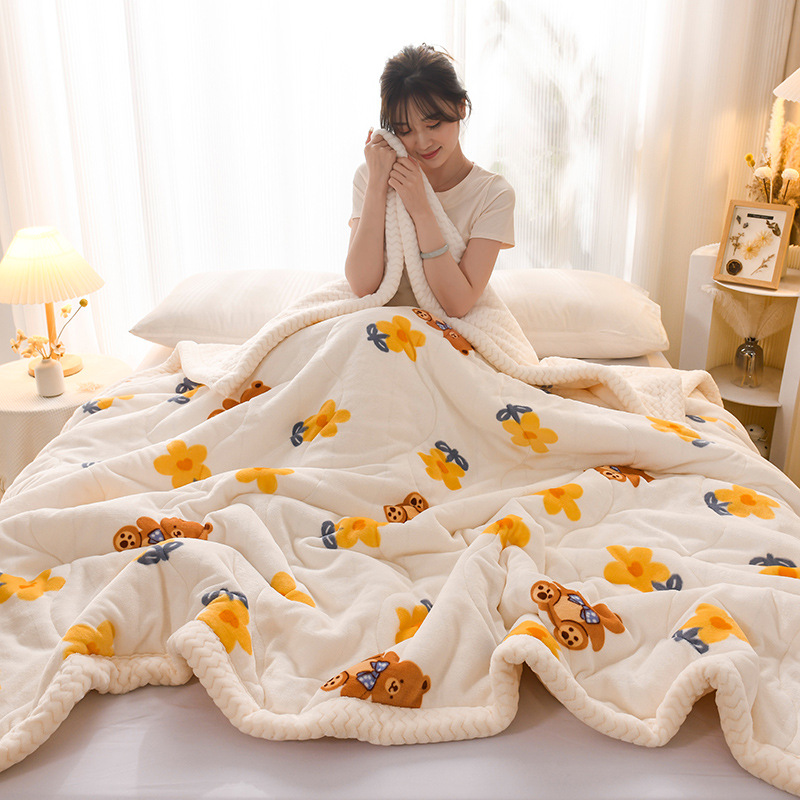 만화 담요 겨울용 두꺼운 누빔 담요 이불 낮잠용 산호색 밀크벨벳 소형 담요 사무실 소파 담요스토어 가기