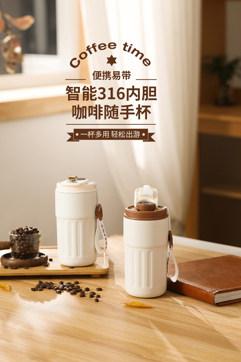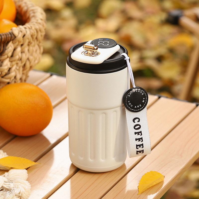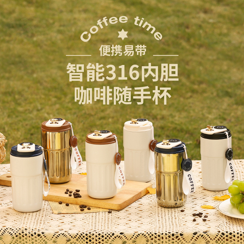 지능형 온도 측정 316 스테인레스 스틸 보온병 컵 높은 색상 값 커피 컵 소녀 동반 컵 컵 로프 휴대용 자동차스토어 가기
