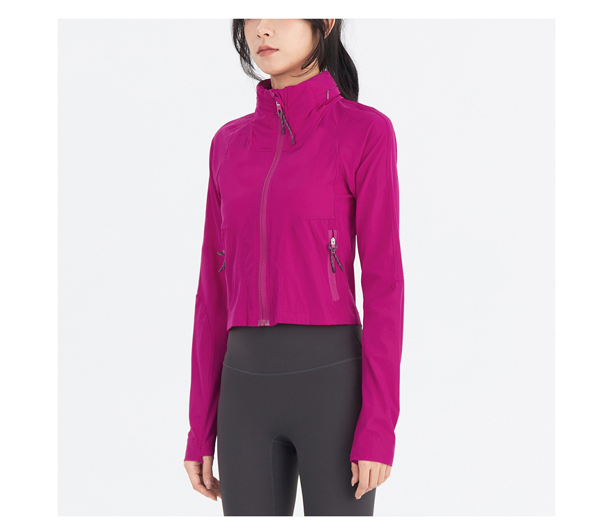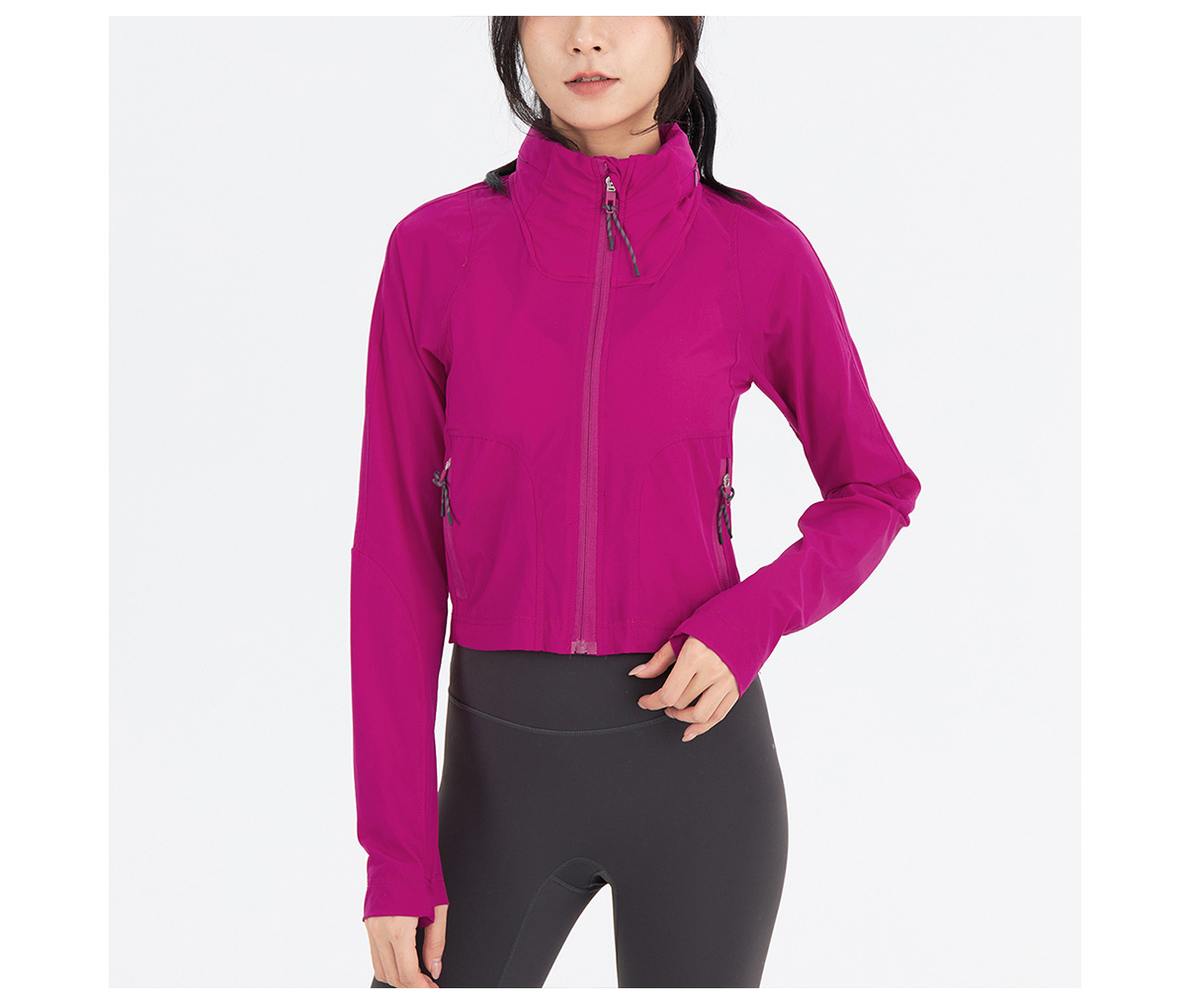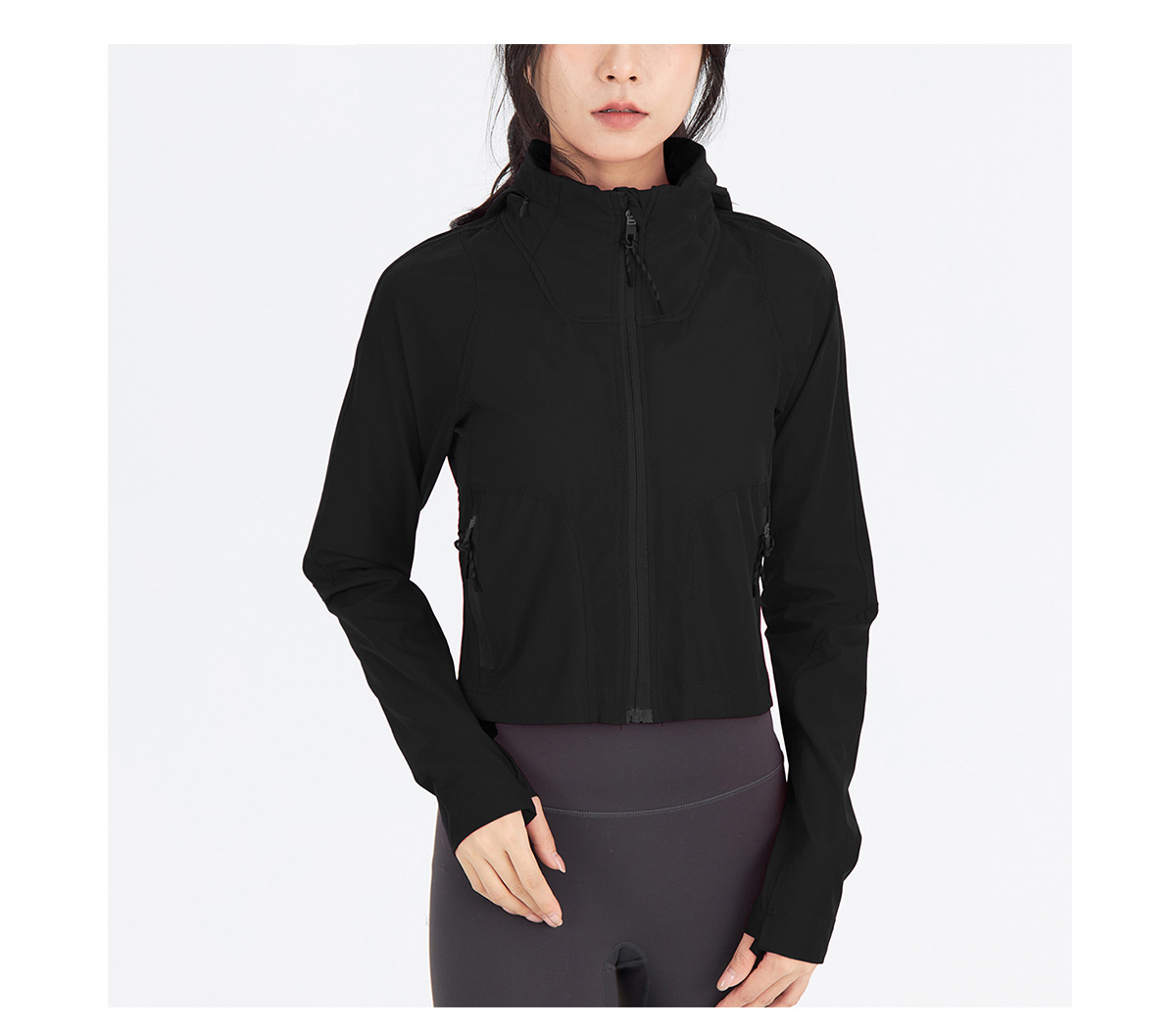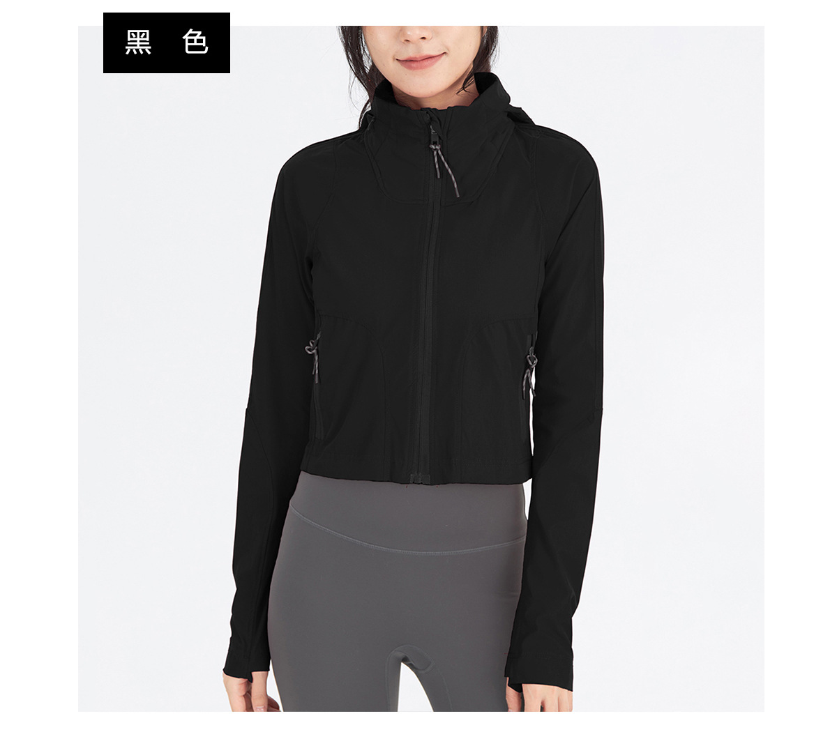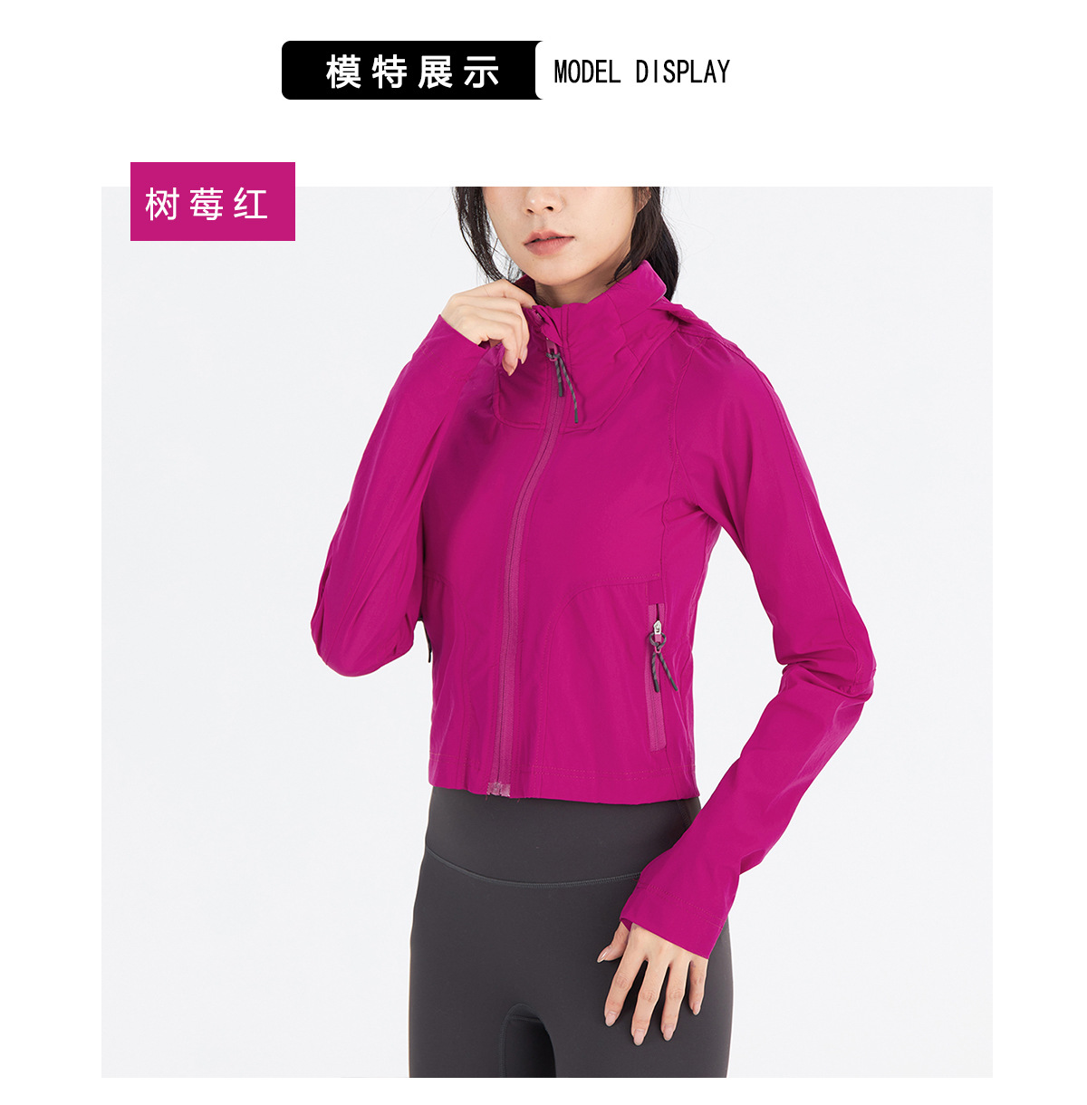[신간] 짧은 하이킹 자켓 요가 옷 매일 통풍 빠른 건조 슬리밍을위한 후드 칼라
