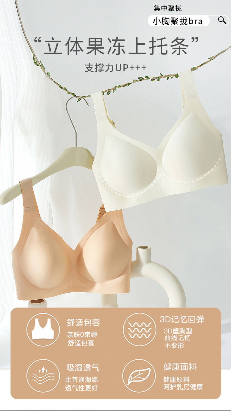 큰 가슴 속옷, 얇은 여성용 노와이어 푸시업 플러스 사이즈 뚱뚱한 여성 100kg 가슴 수축 편안한 무봉제 브라