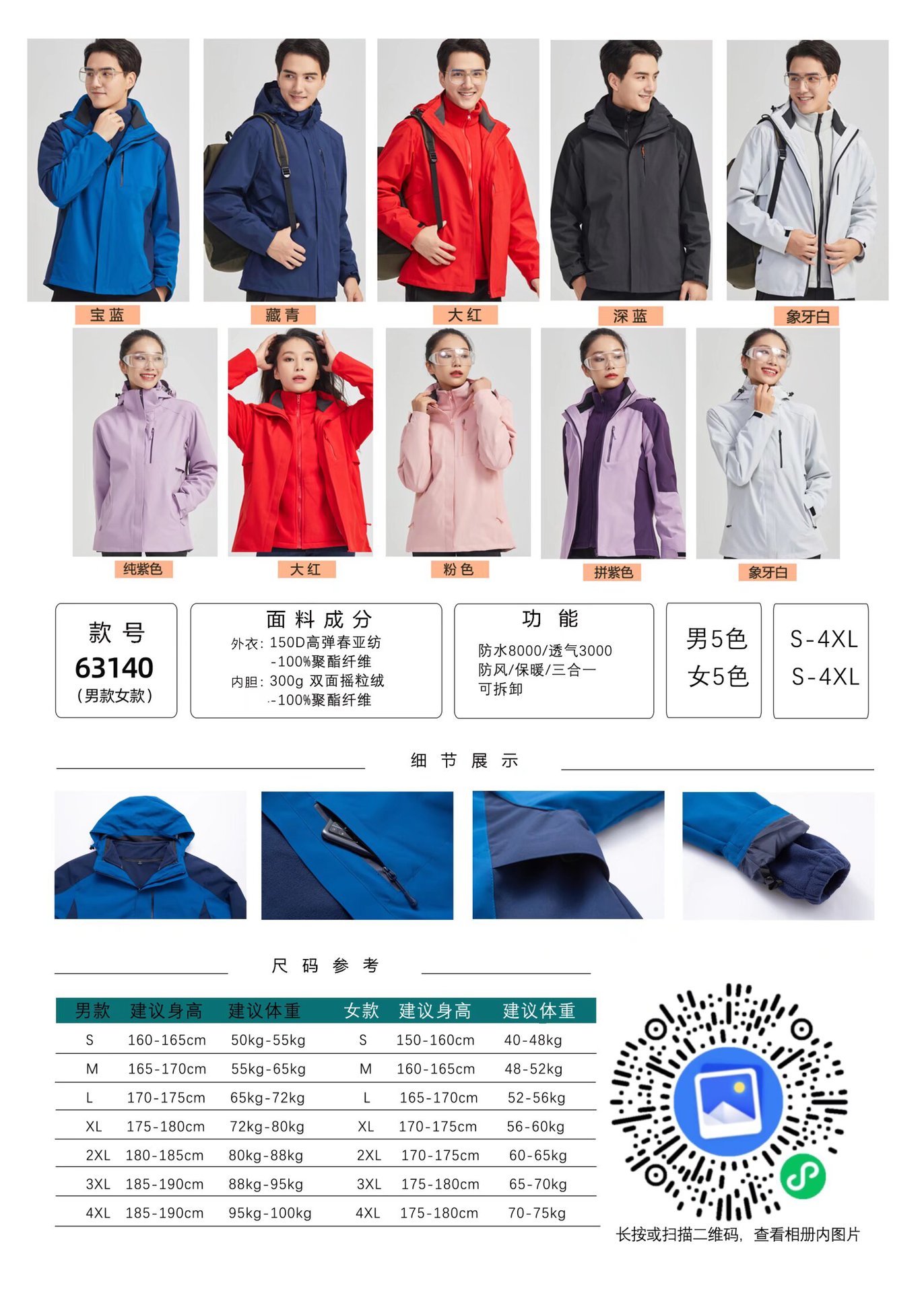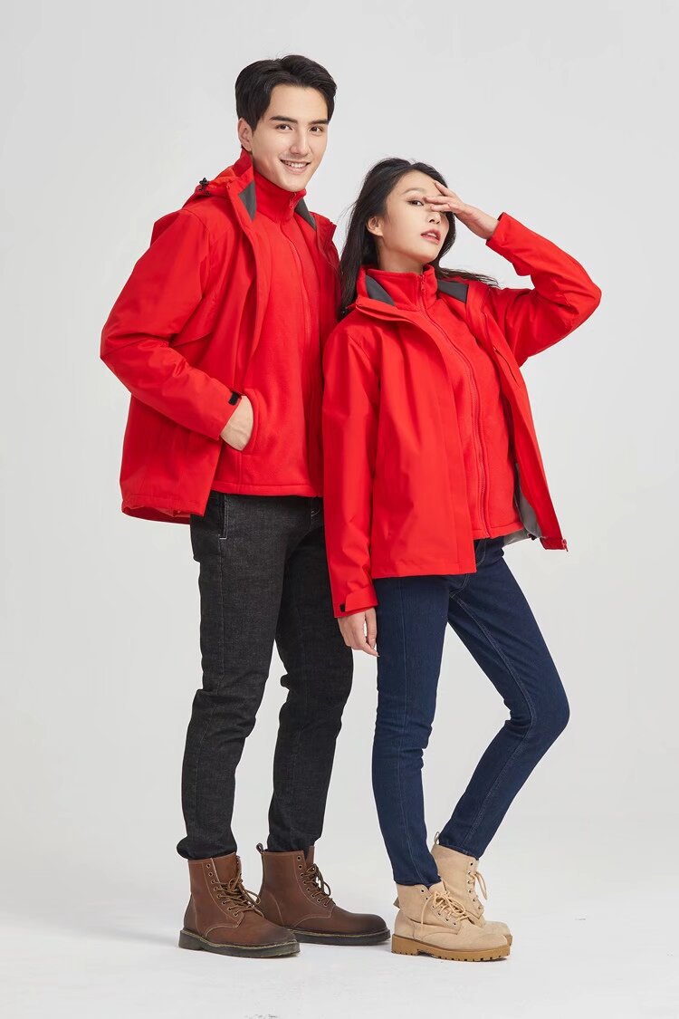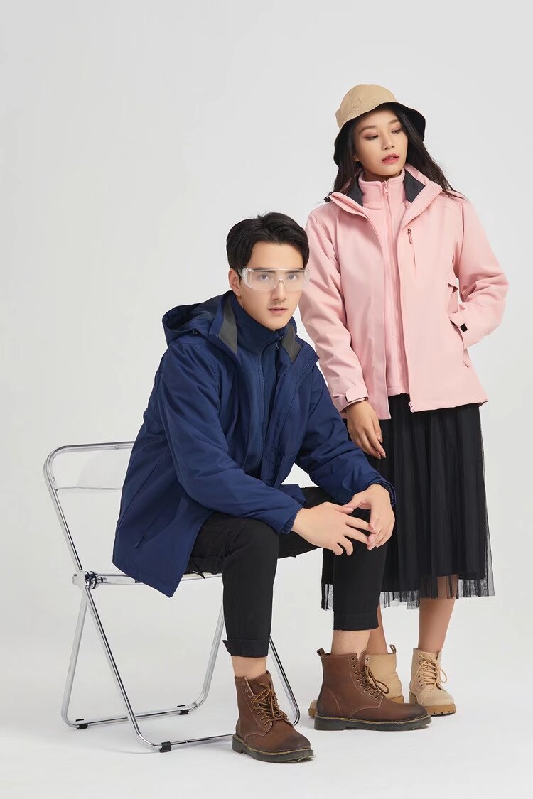 도매 야외 남성과 여성의 충전 의류 스포츠 코트 겨울 기모 따뜻한 남성과 여성의 방수 등산 세트 단색스토어 가기