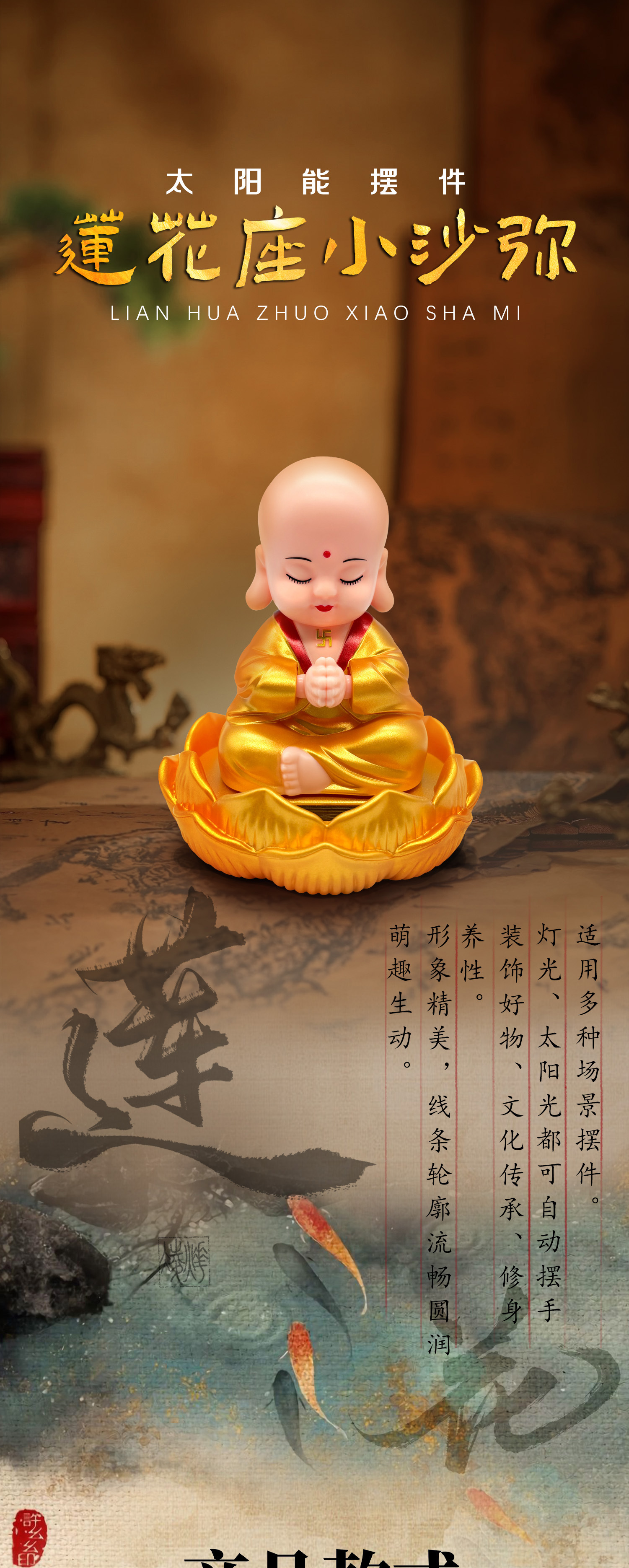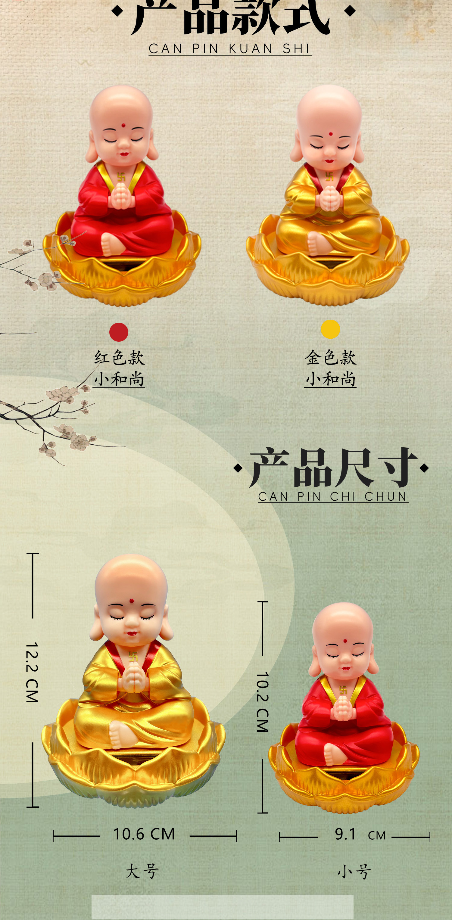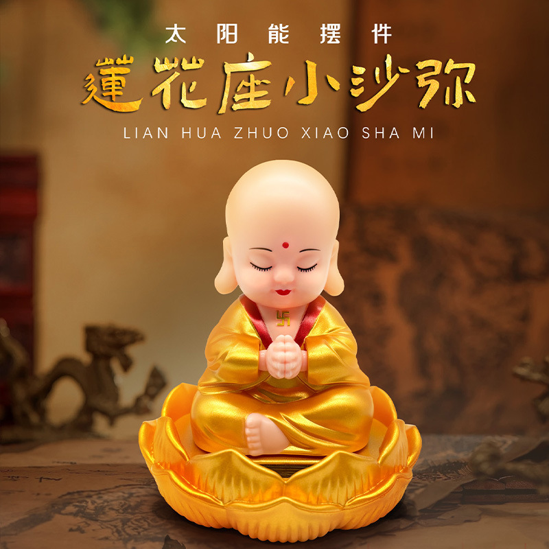 태양광 스윙 흔들리는 불상 자동차 작은 스님 자동차 인테리어 장식품 로브 미로 부처님 자동차 장식품 선스토어 가기