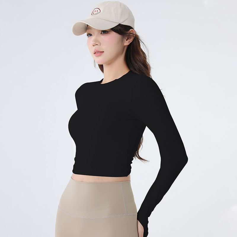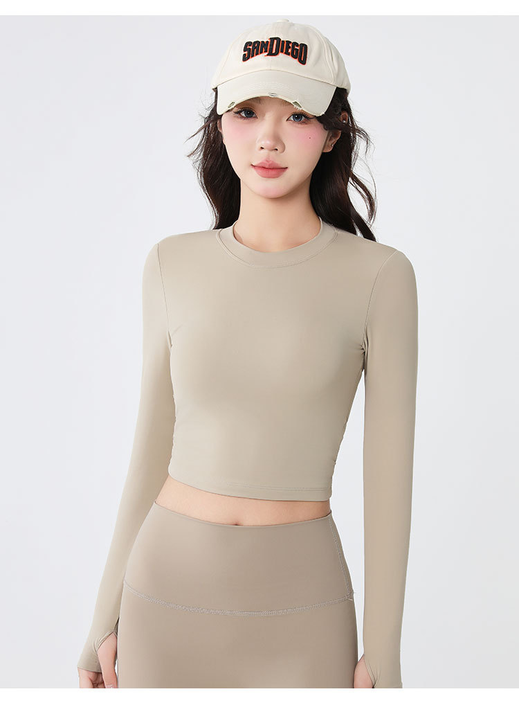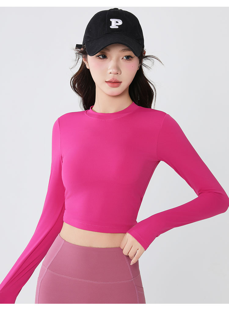 새로운 요가 옷 긴팔 여성용 고정 원피스 가슴 매트 스포츠 탑 필라테스 빠른 건조 슬리밍 피트니스 옷 가을스토어 가기