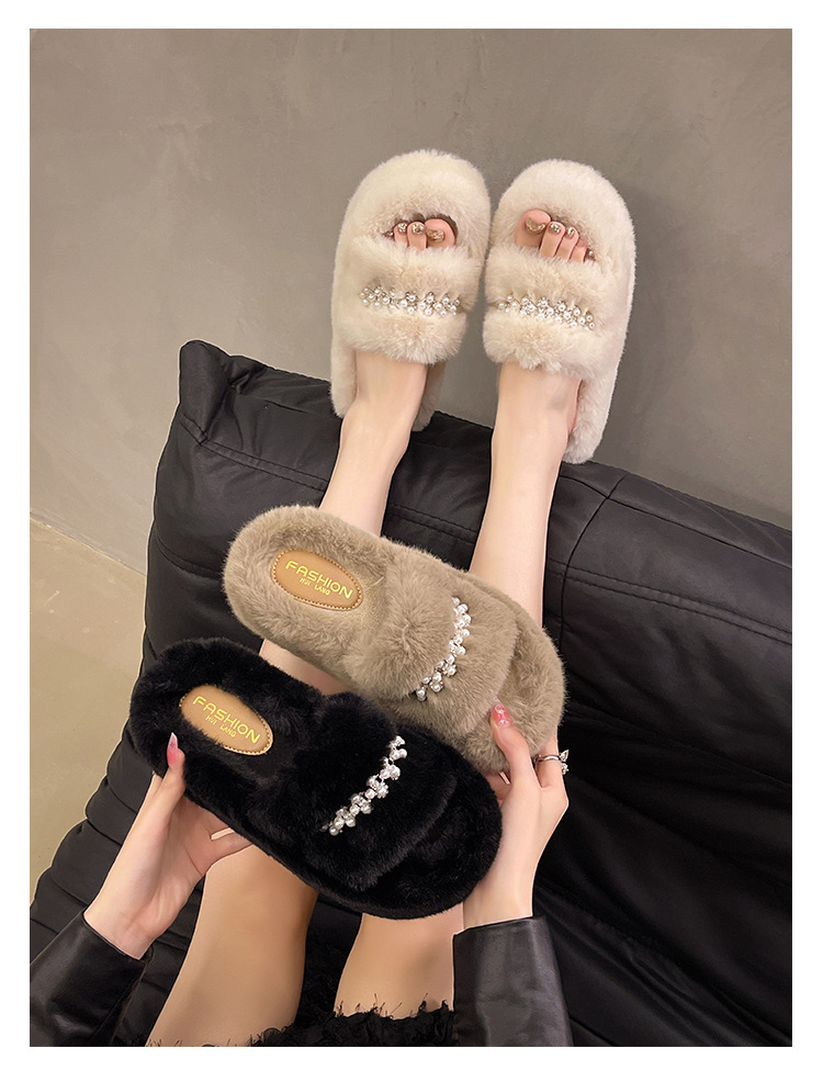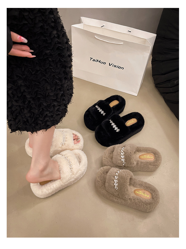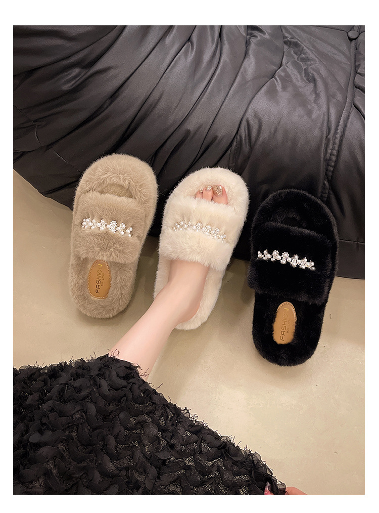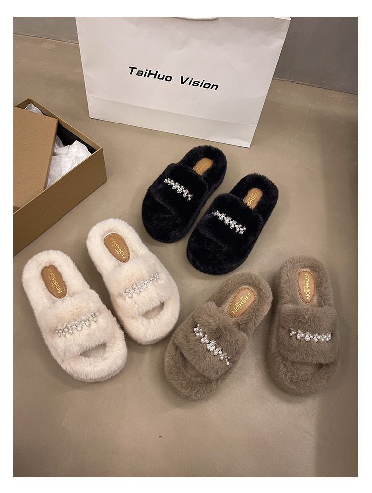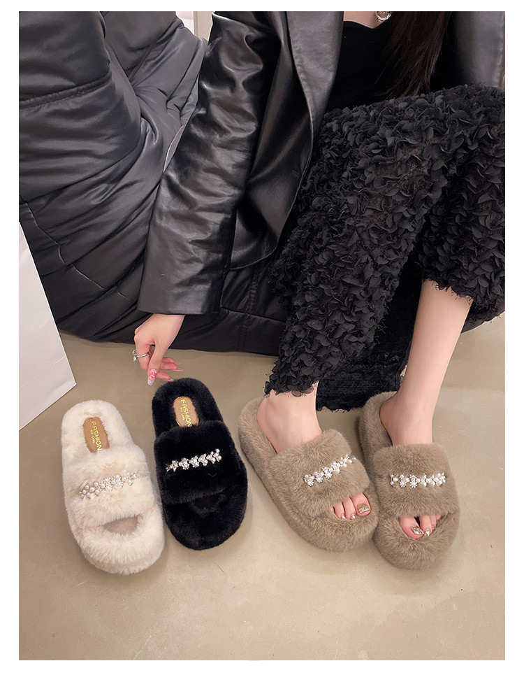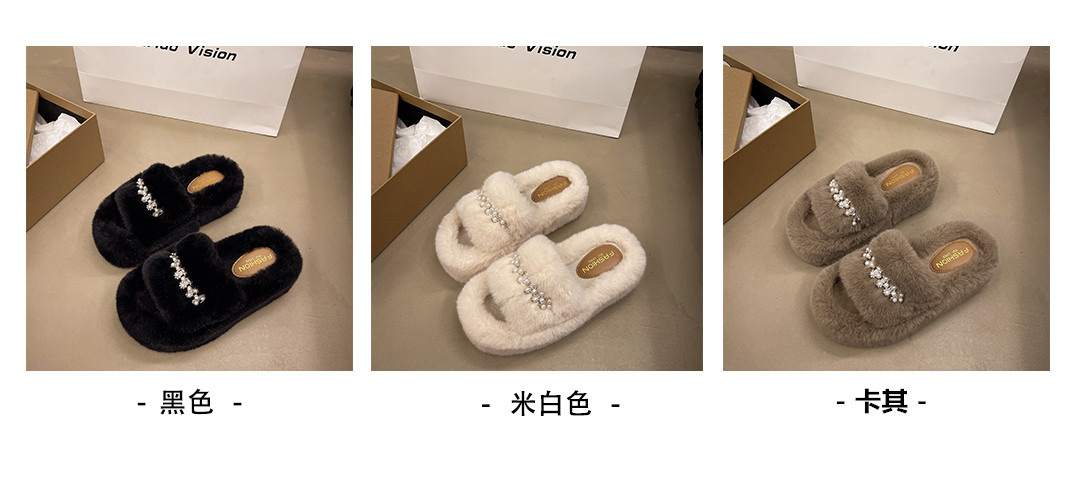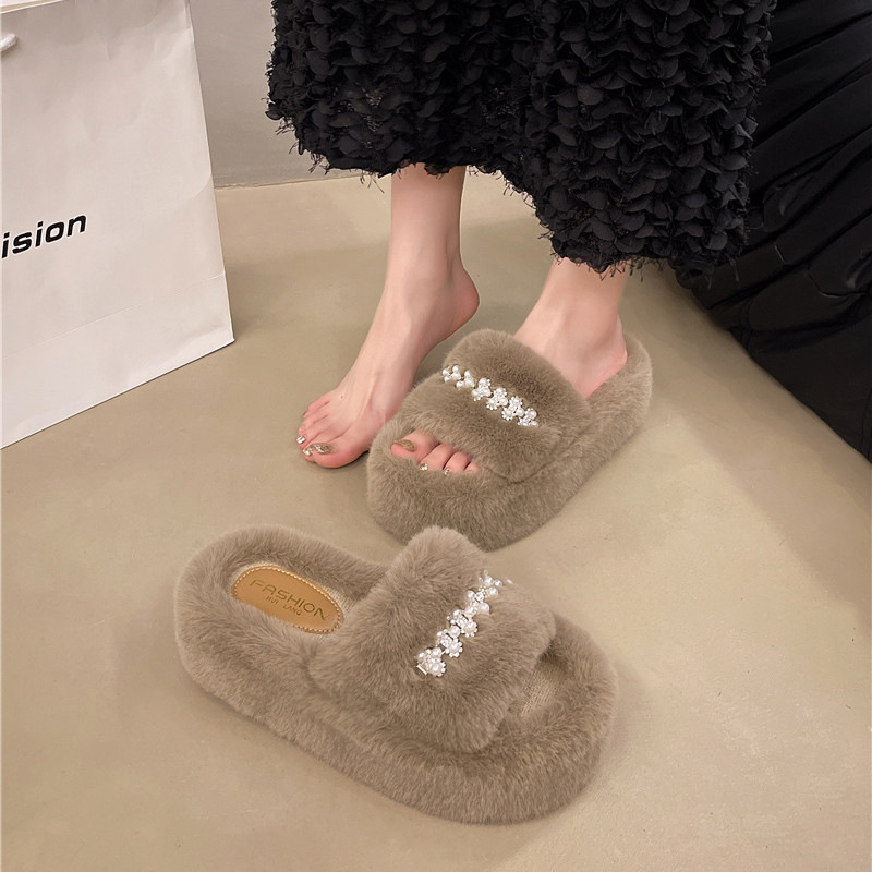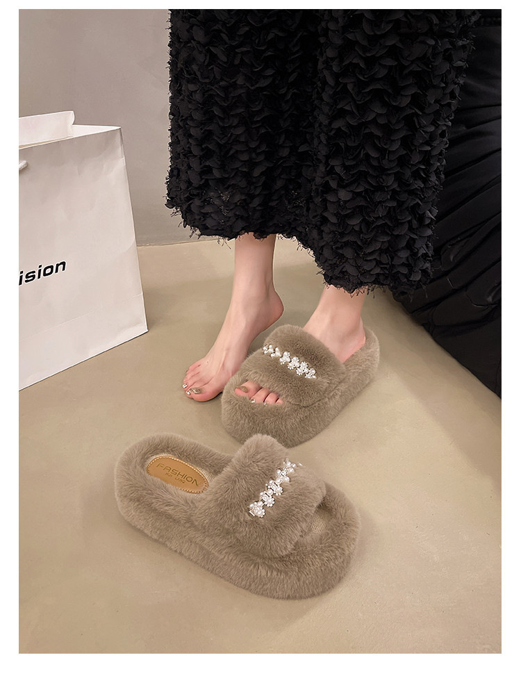 인터넷 레드 펄 한 단어 마오 마오 슬리퍼 여성 외부 착용 2024 새로운 가을과 겨울 요정 스타일 두꺼운 바닥 봉제 면 슬리퍼스토어 가기