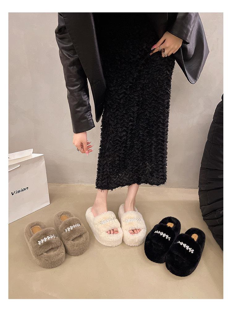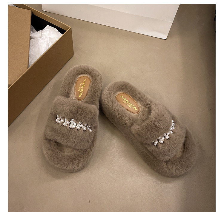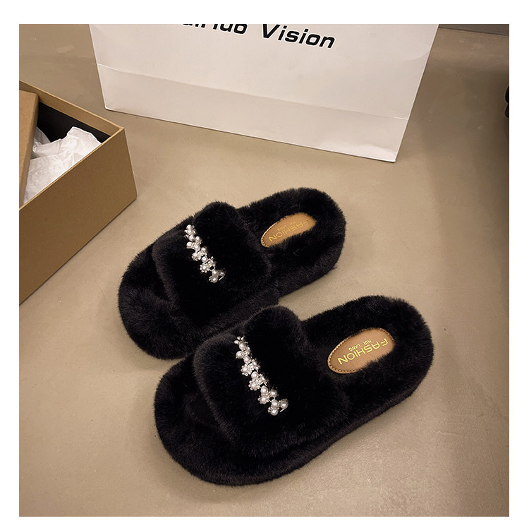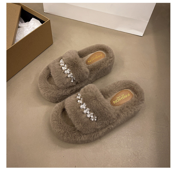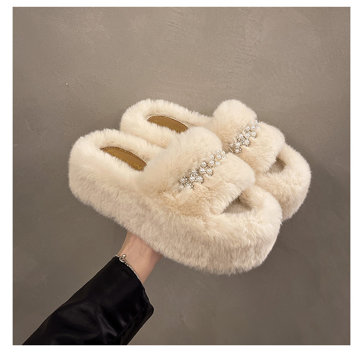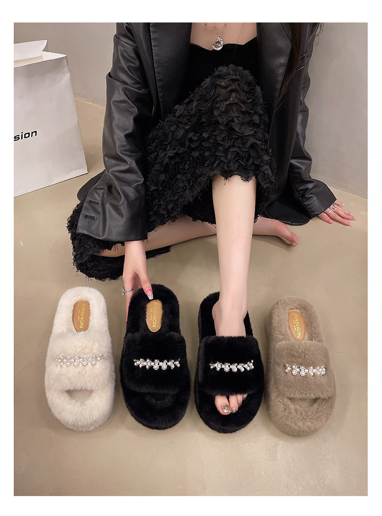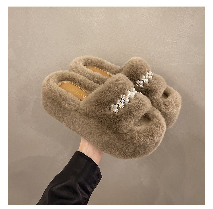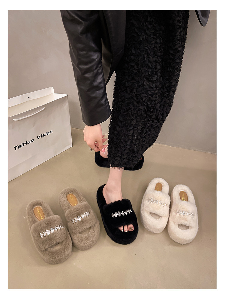 인터넷 레드 펄 한 단어 마오 마오 슬리퍼 여성 외부 착용 2024 새로운 가을과 겨울 요정 스타일 두꺼운 바닥 봉제 면 슬리퍼스토어 가기