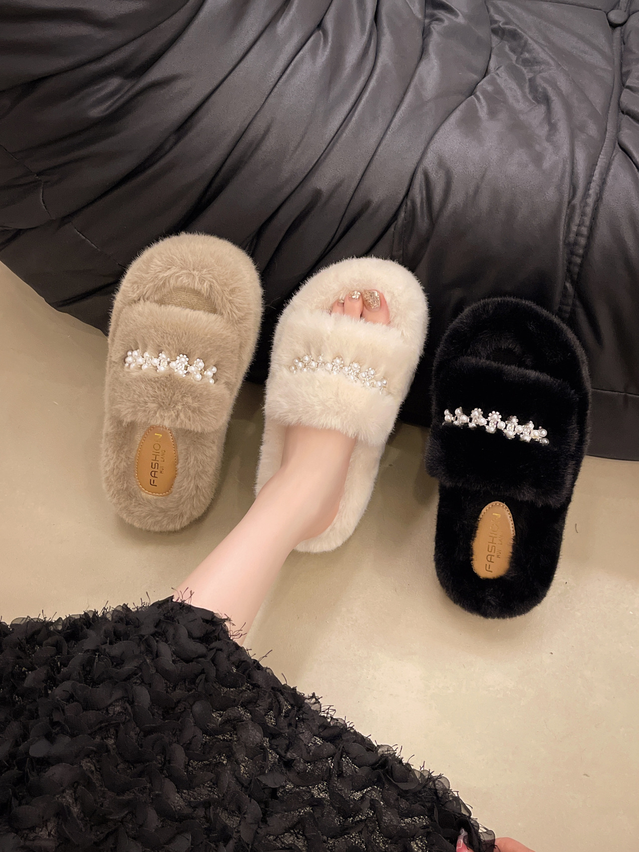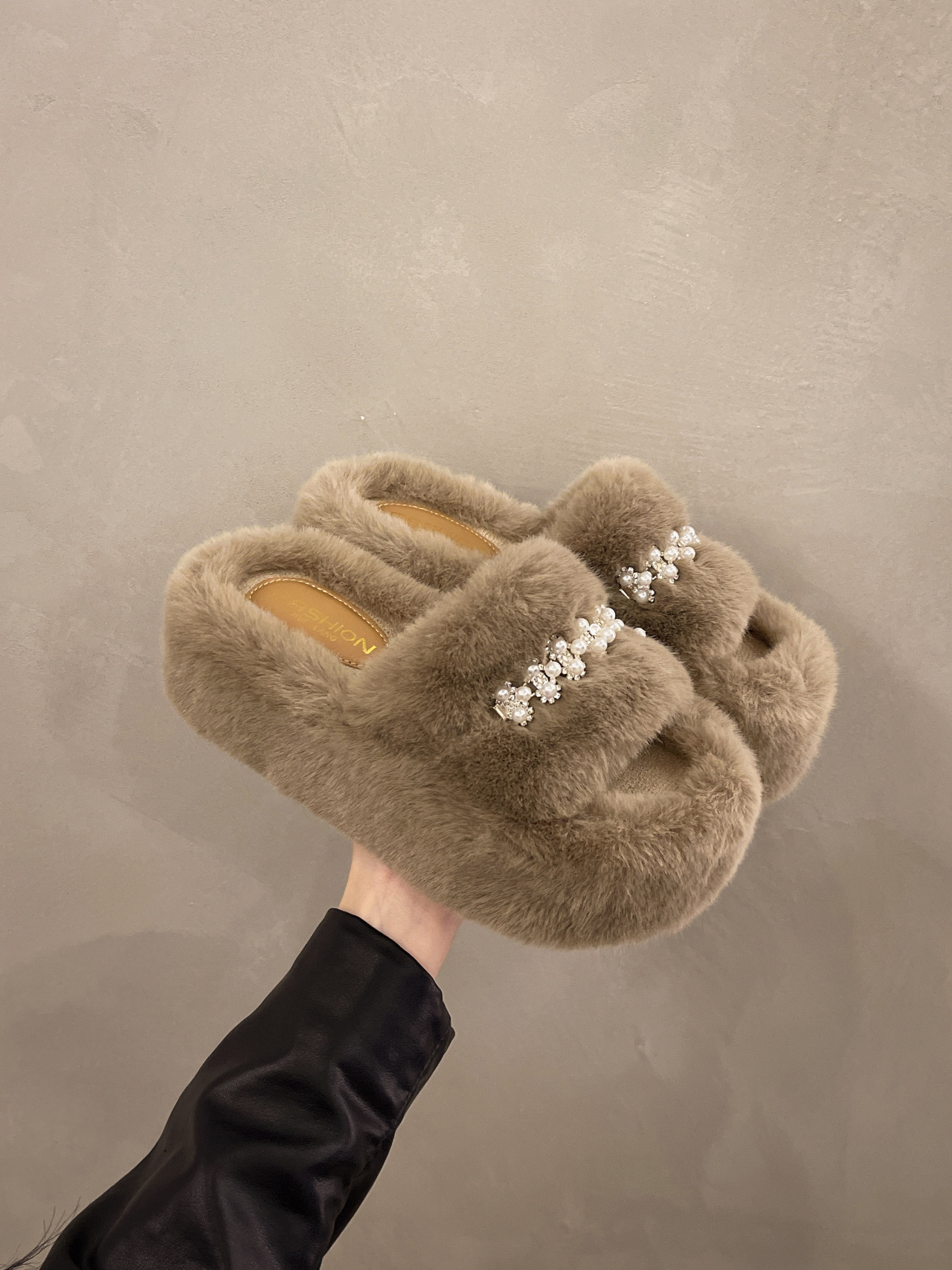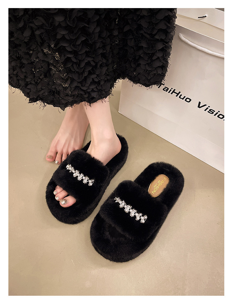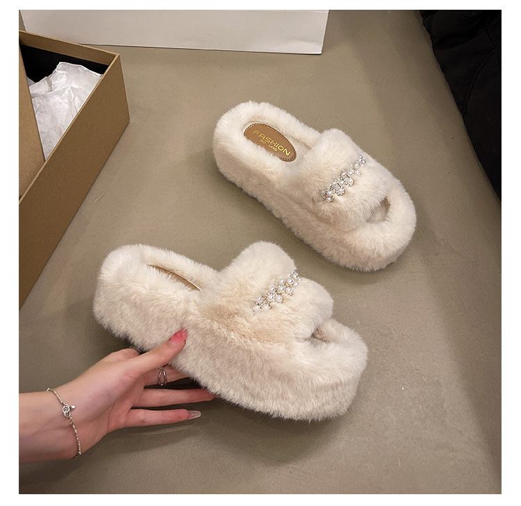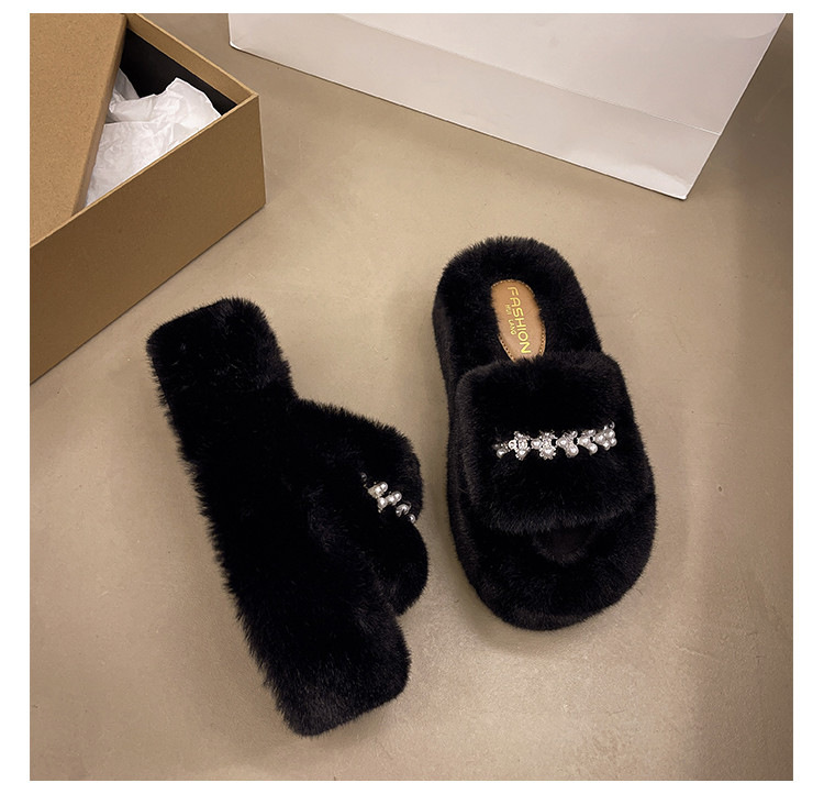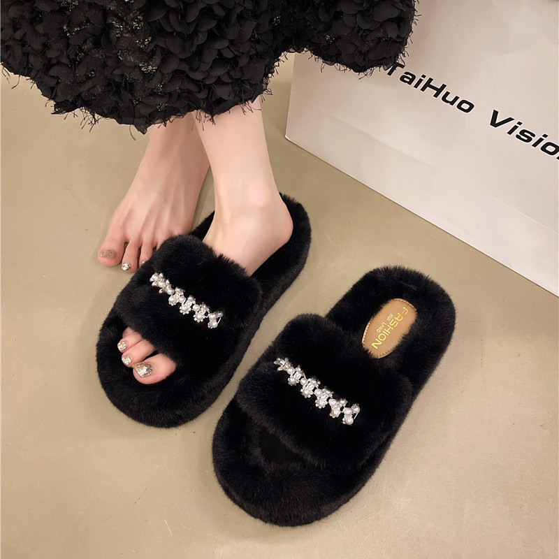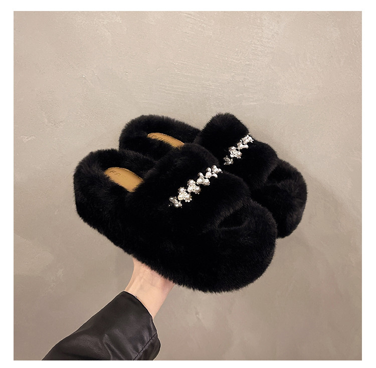 인터넷 레드 펄 한 단어 마오 마오 슬리퍼 여성 외부 착용 2024 새로운 가을과 겨울 요정 스타일 두꺼운 바닥 봉제 면 슬리퍼스토어 가기