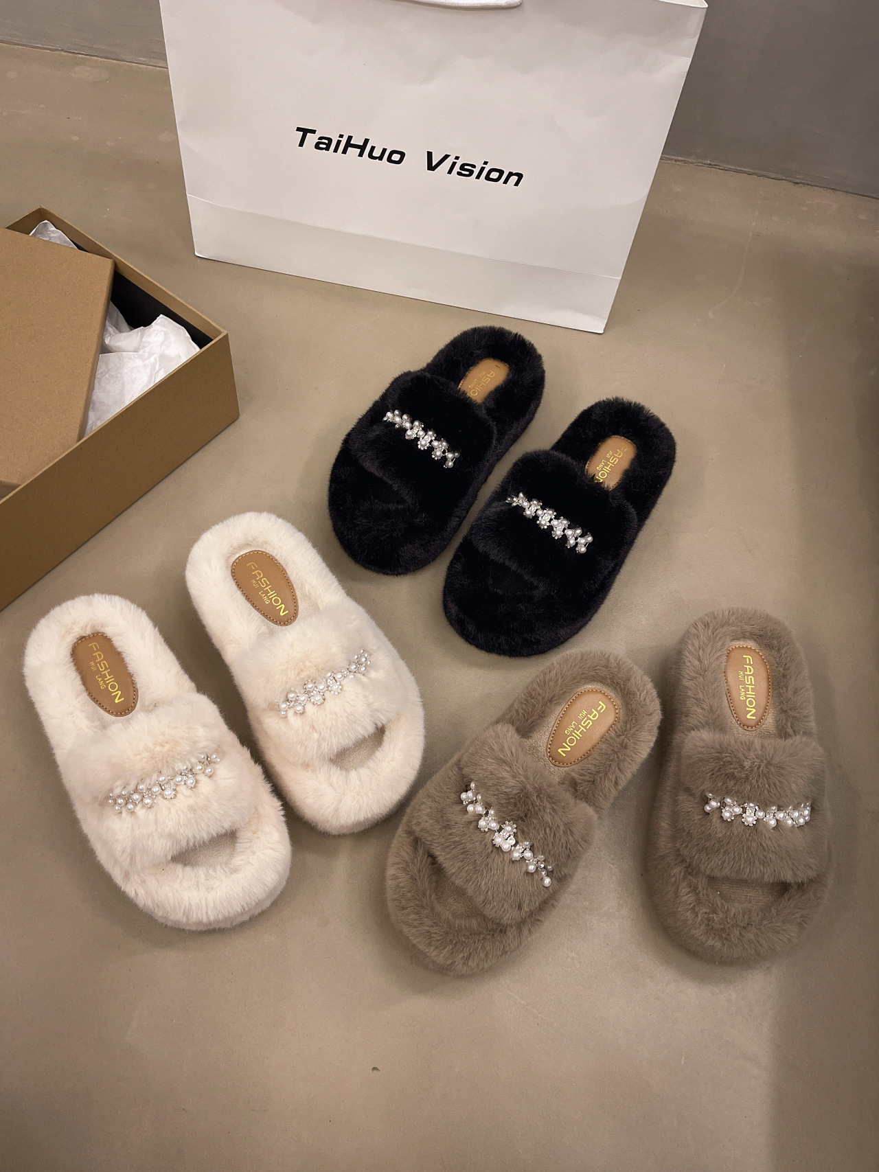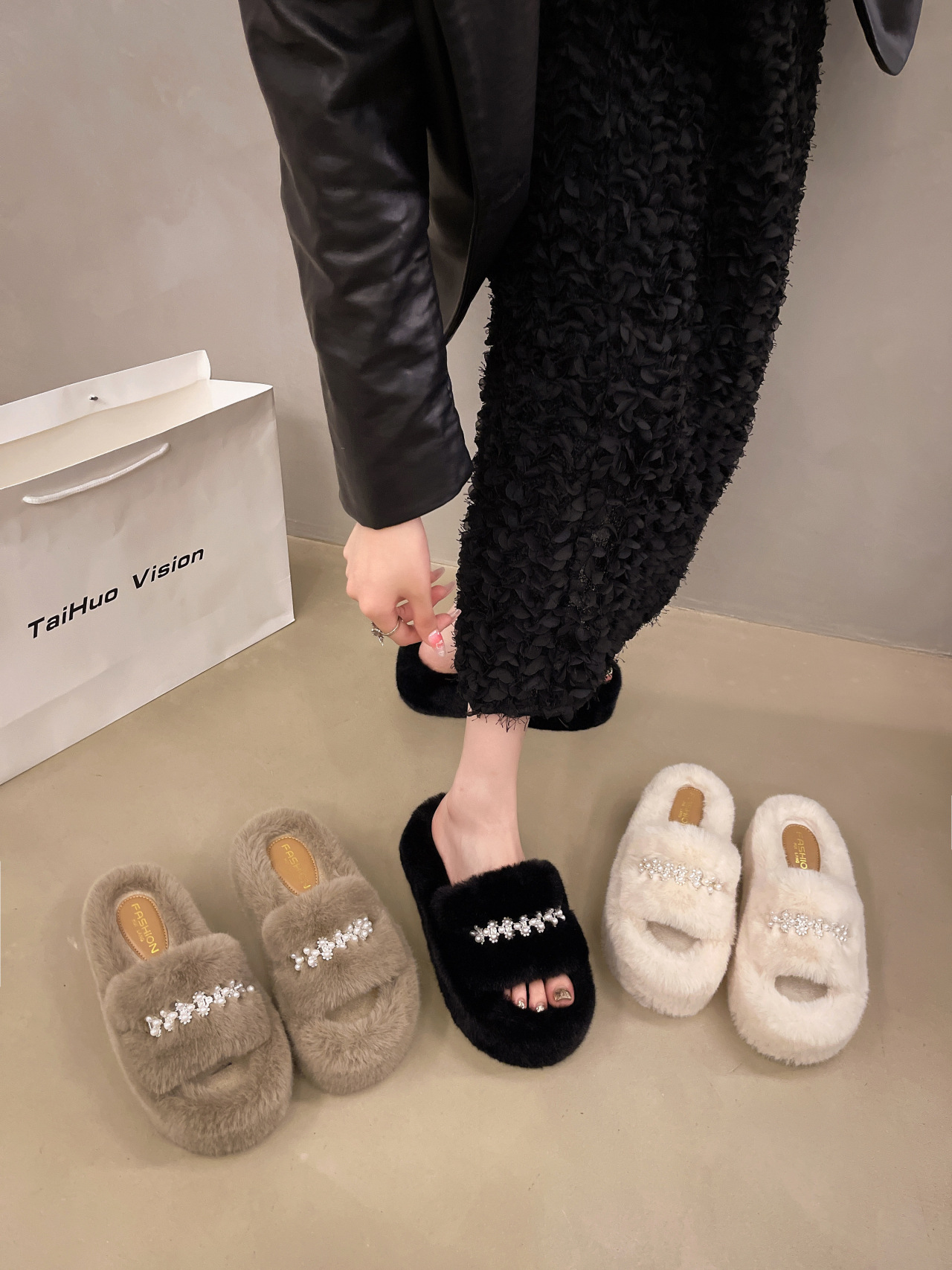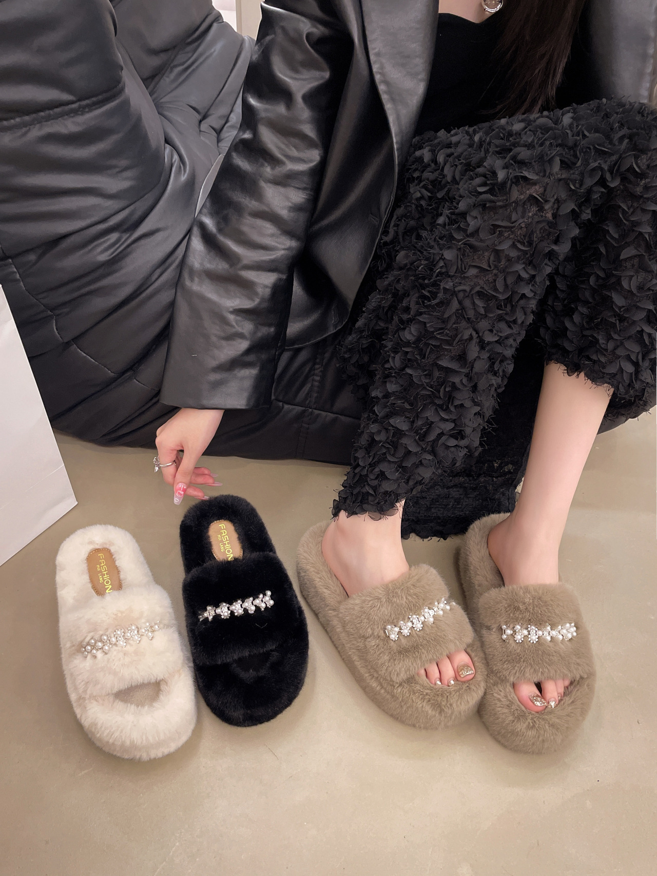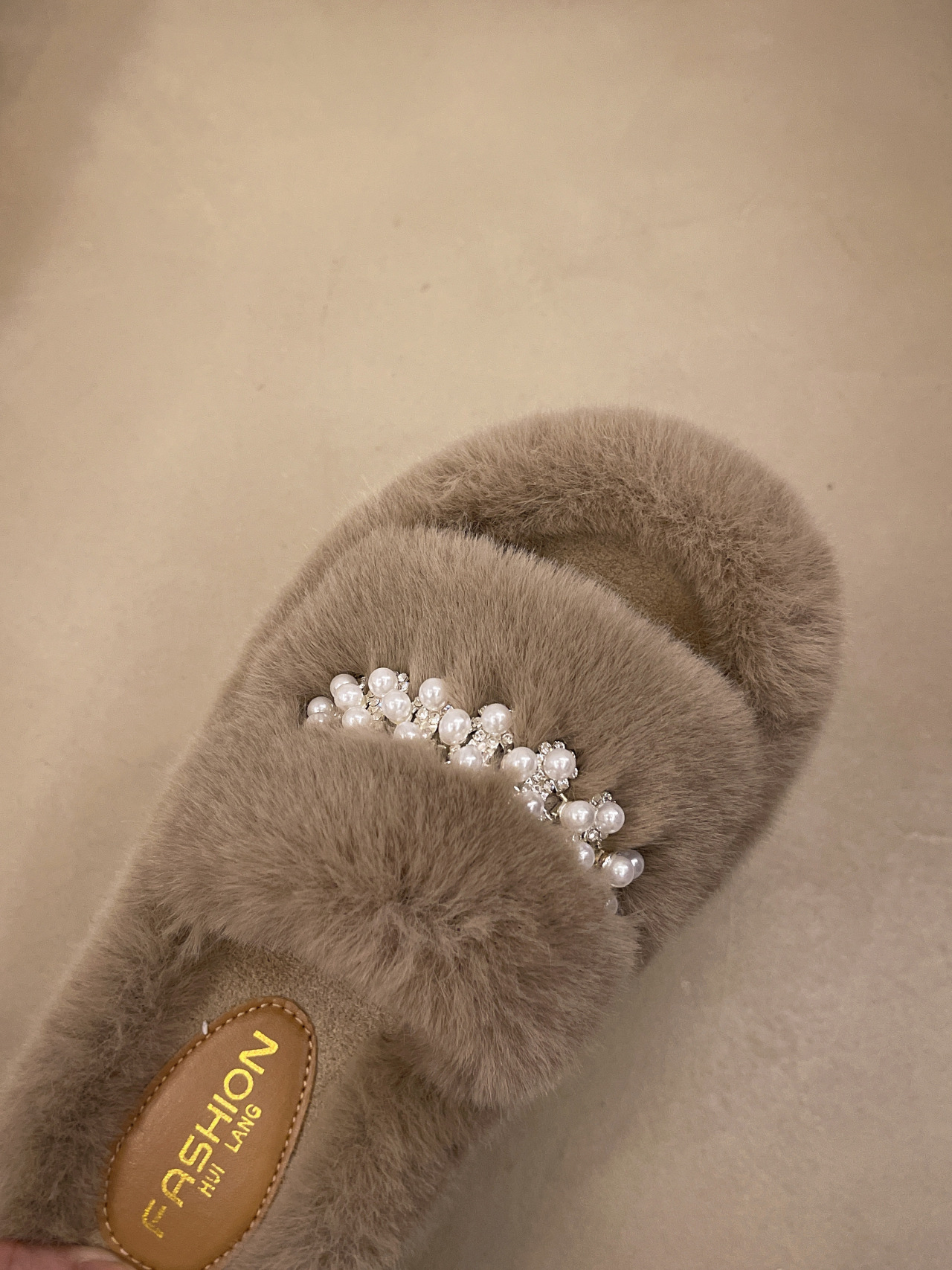 인터넷 레드 펄 한 단어 마오 마오 슬리퍼 여성 외부 착용 2024 새로운 가을과 겨울 요정 스타일 두꺼운 바닥 봉제 면 슬리퍼스토어 가기