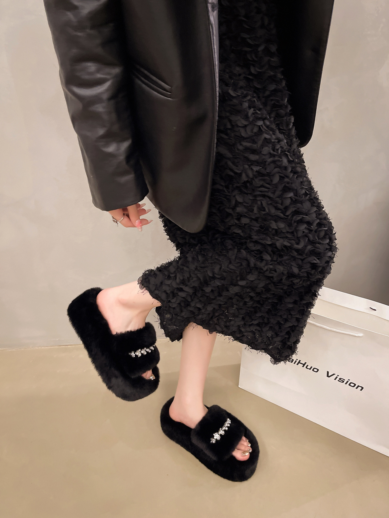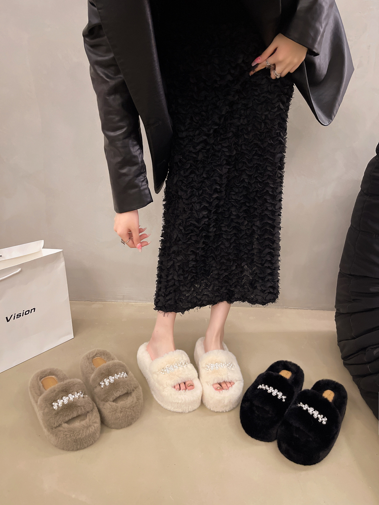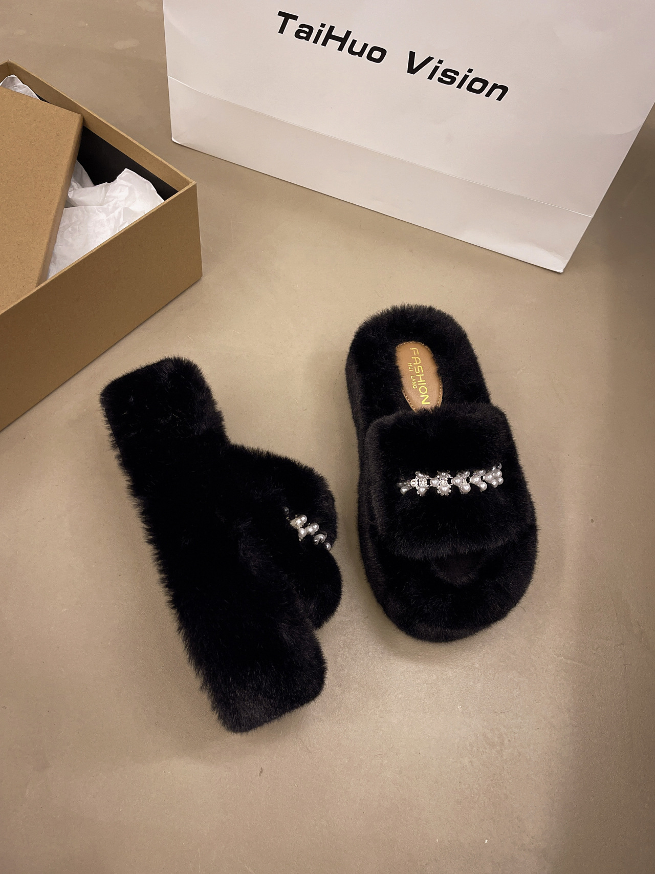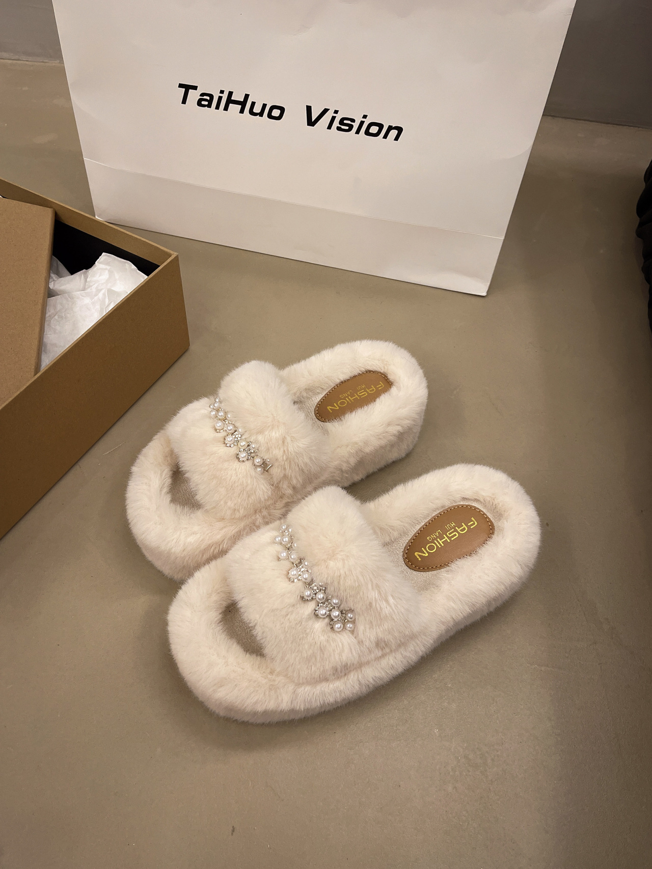 인터넷 레드 펄 한 단어 마오 마오 슬리퍼 여성 외부 착용 2024 새로운 가을과 겨울 요정 스타일 두꺼운 바닥 봉제 면 슬리퍼스토어 가기