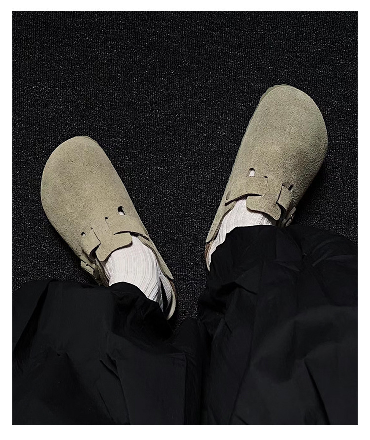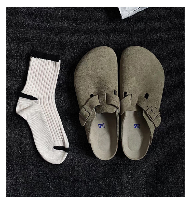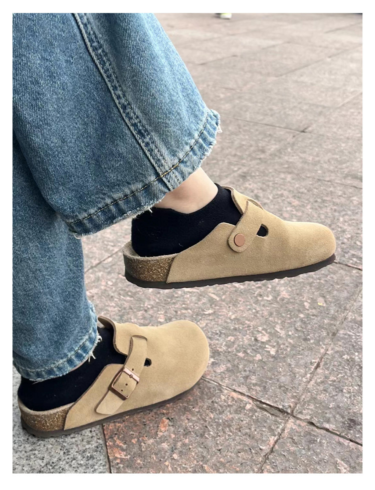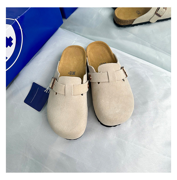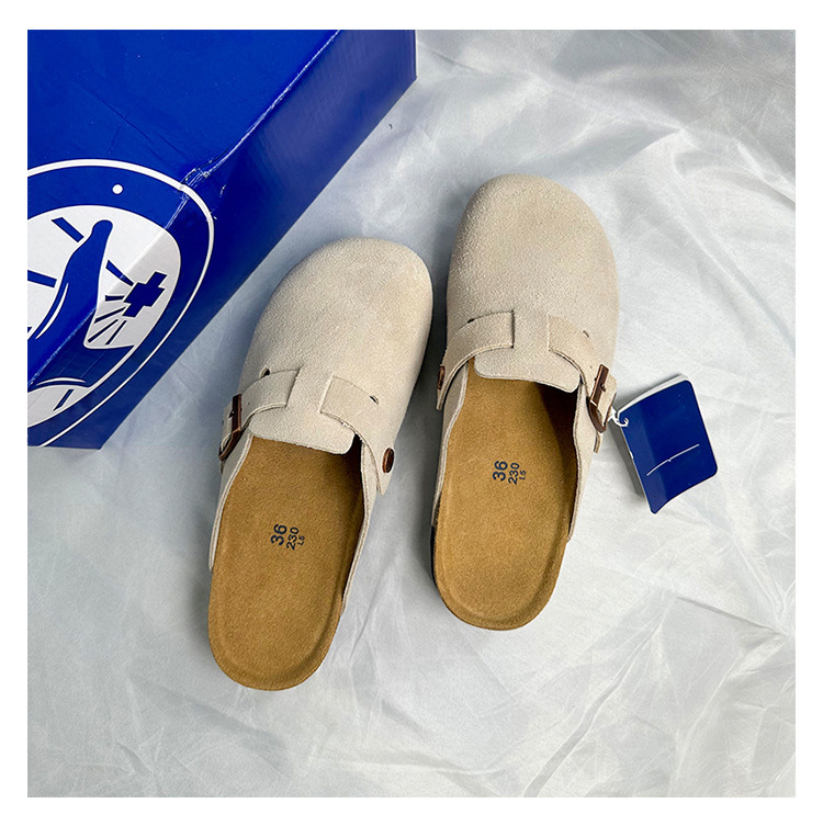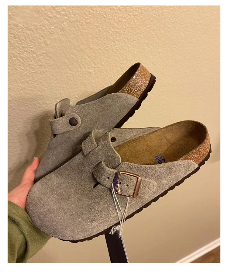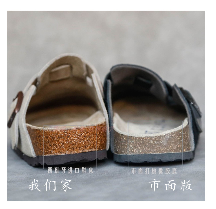 Cowhide Birkenthal 슬리퍼 Baotou Half-Slip-On Outwear 슬리퍼 Unisex 정품 가죽 코르크 Birkenthal 슬리퍼 플러스 사이즈스토어 가기
