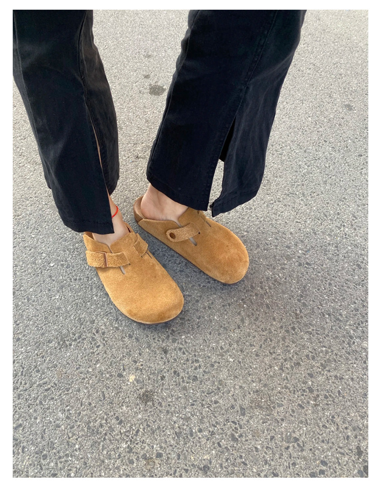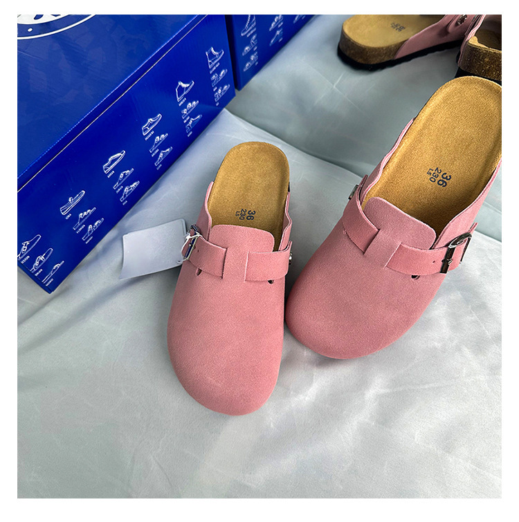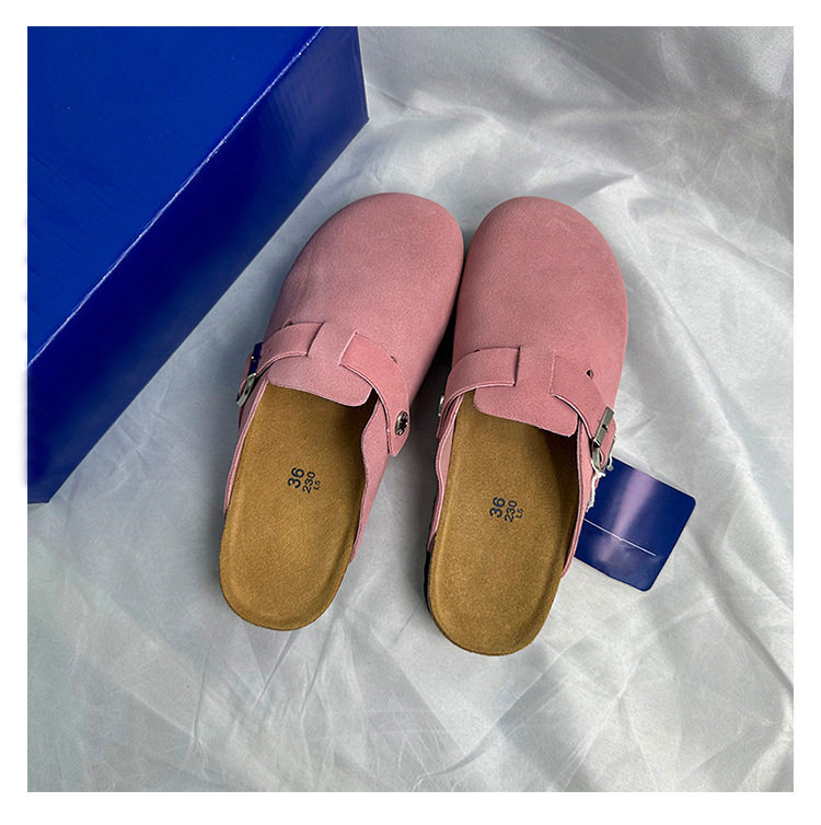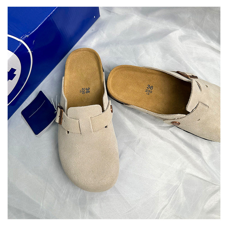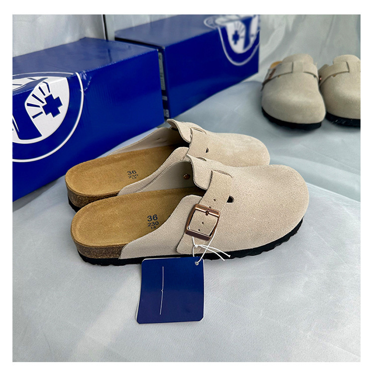 Cowhide Birkenthal 슬리퍼 Baotou Half-Slip-On Outwear 슬리퍼 Unisex 정품 가죽 코르크 Birkenthal 슬리퍼 플러스 사이즈