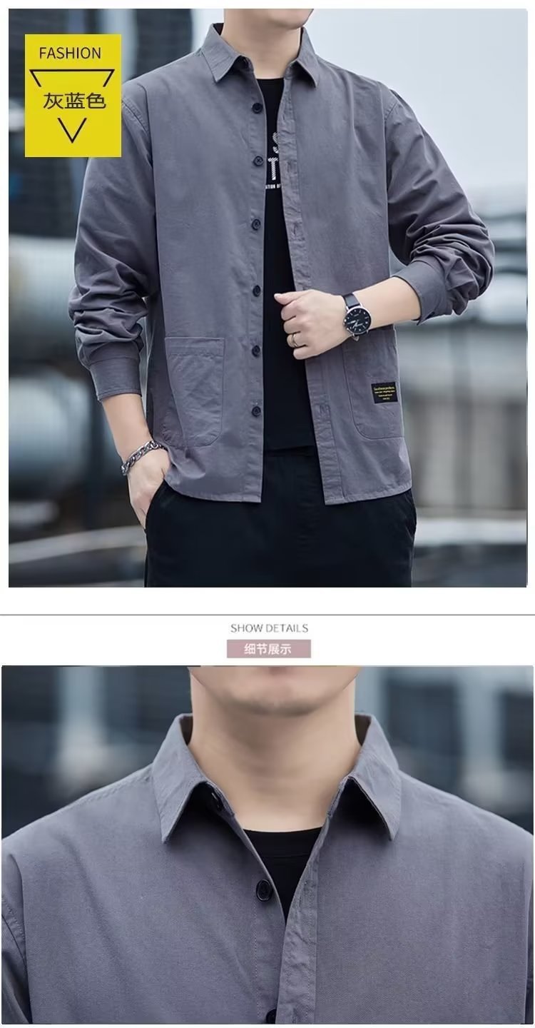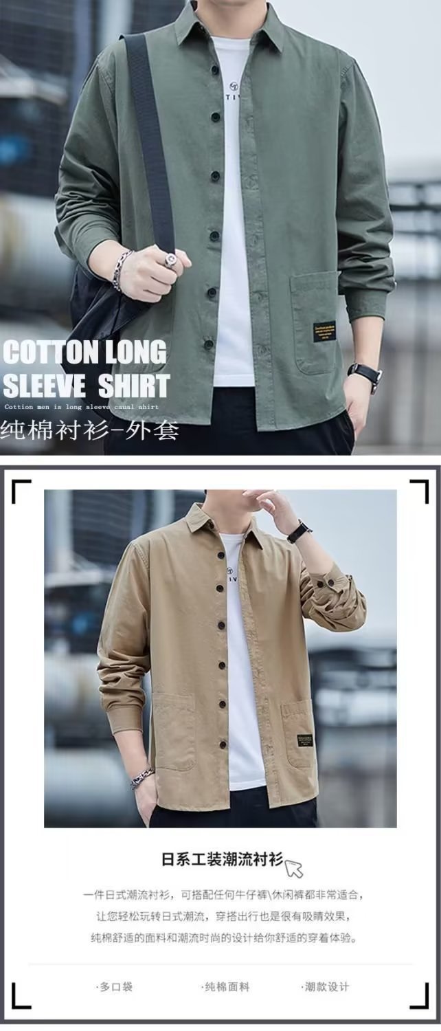 2024 긴팔 셔츠 남자 작업 코트 봄과 가을 유행 느슨한 캐주얼 셔츠 남자의 가을 캐주얼 홍콩 스타일