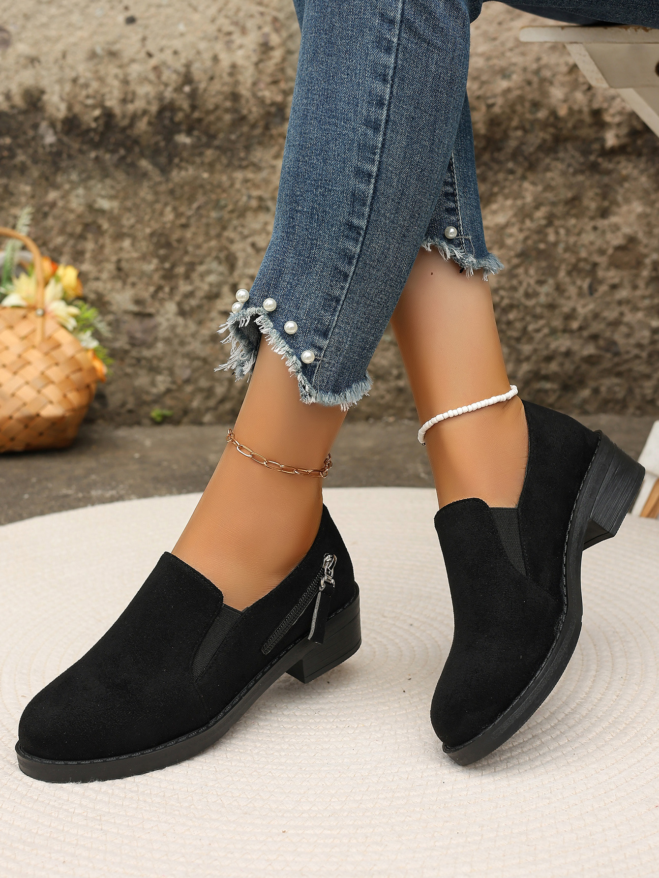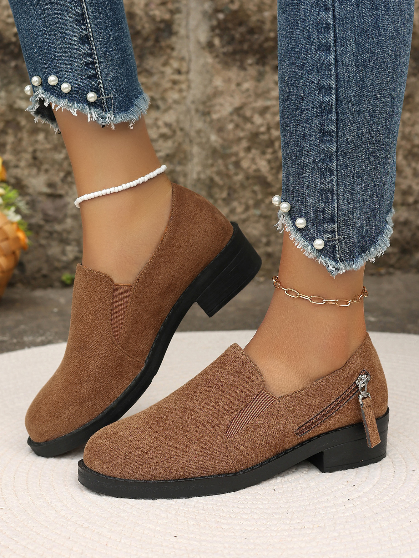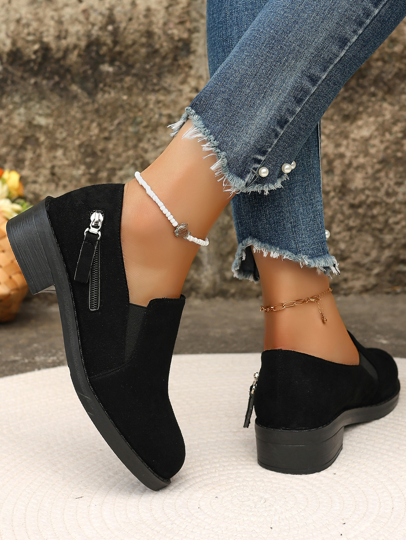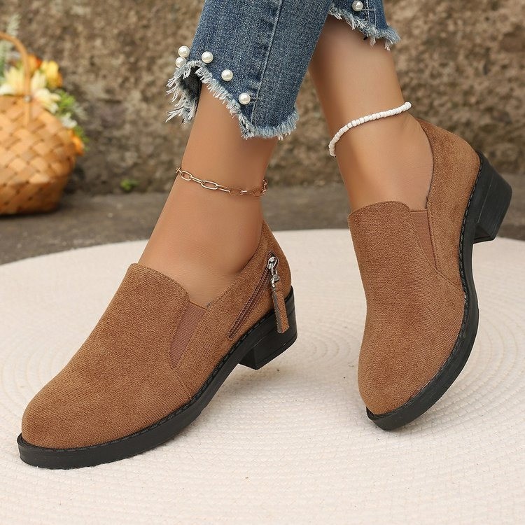 대외 무역 플러스 사이즈 2024 지퍼를 가진 여성을위한 새로운 포인팅 영국 스타일 싱글 신발 장식 편안한 슬립 온 싱글 신발스토어 가기