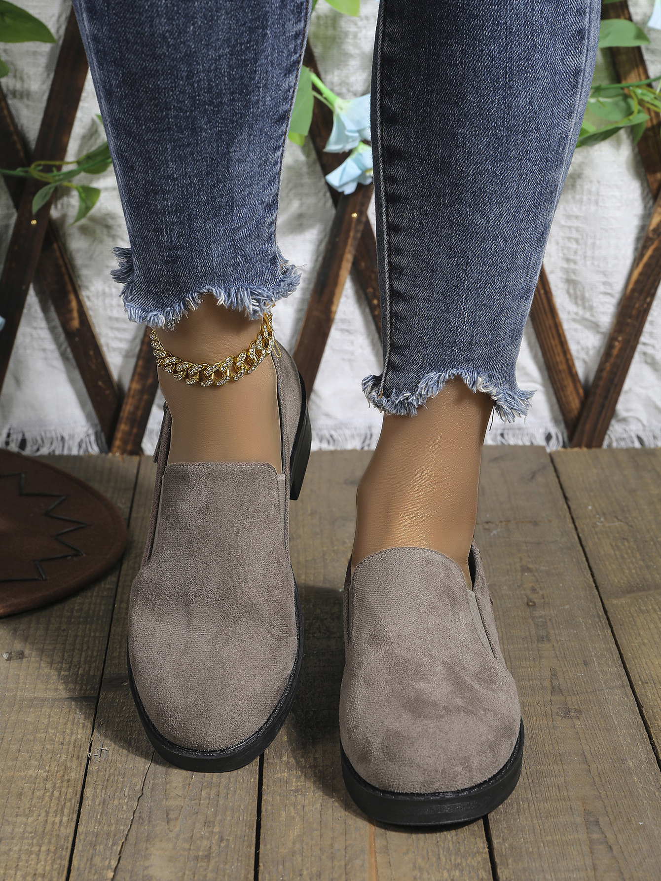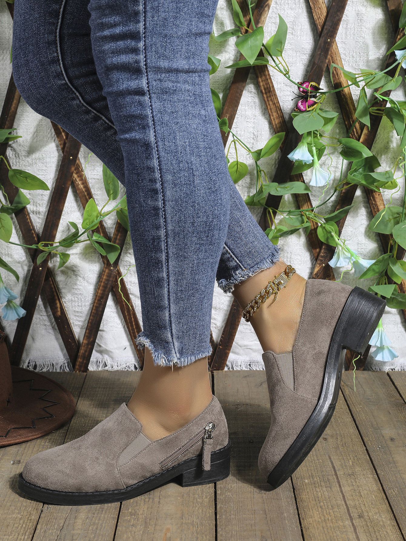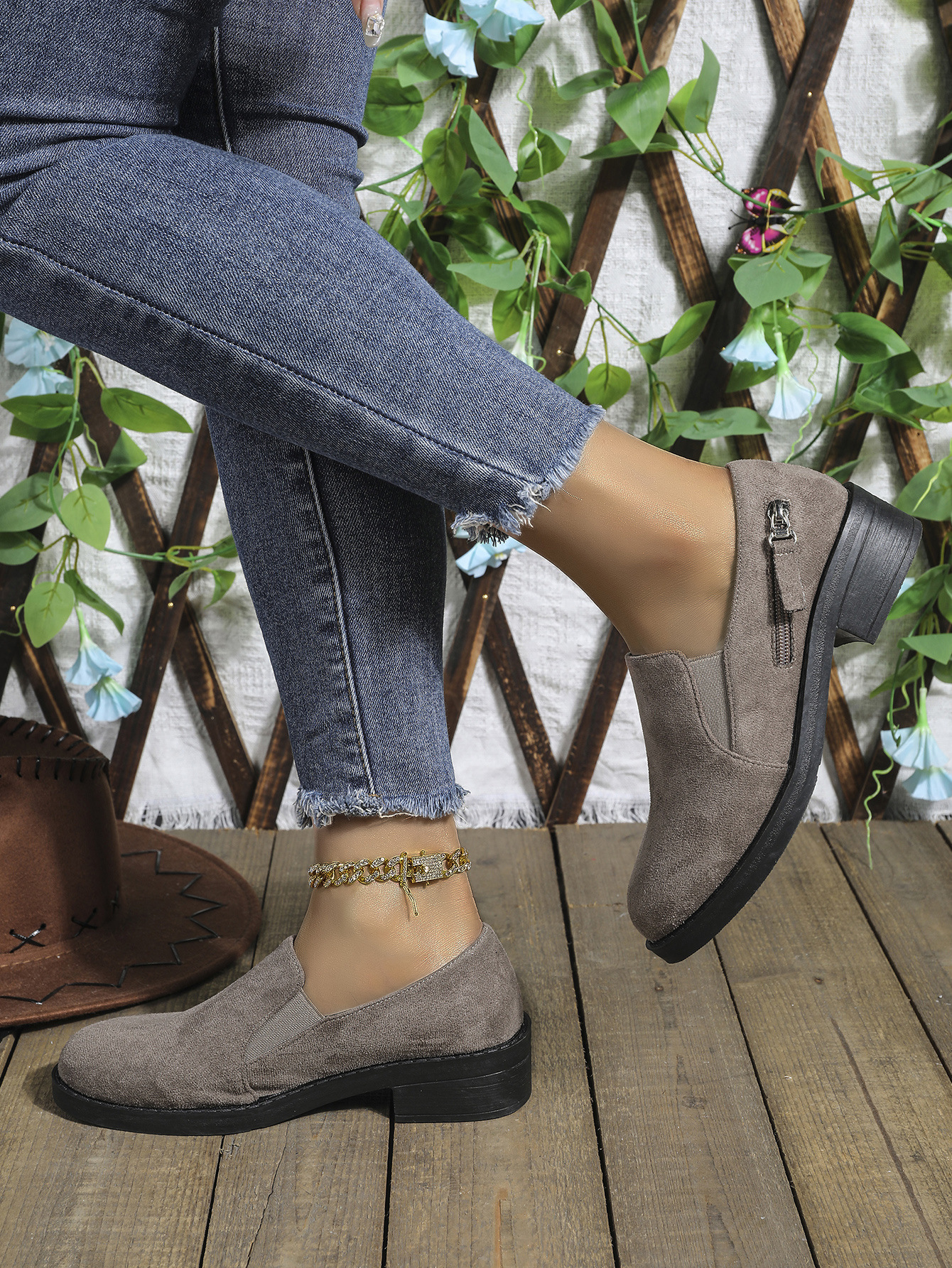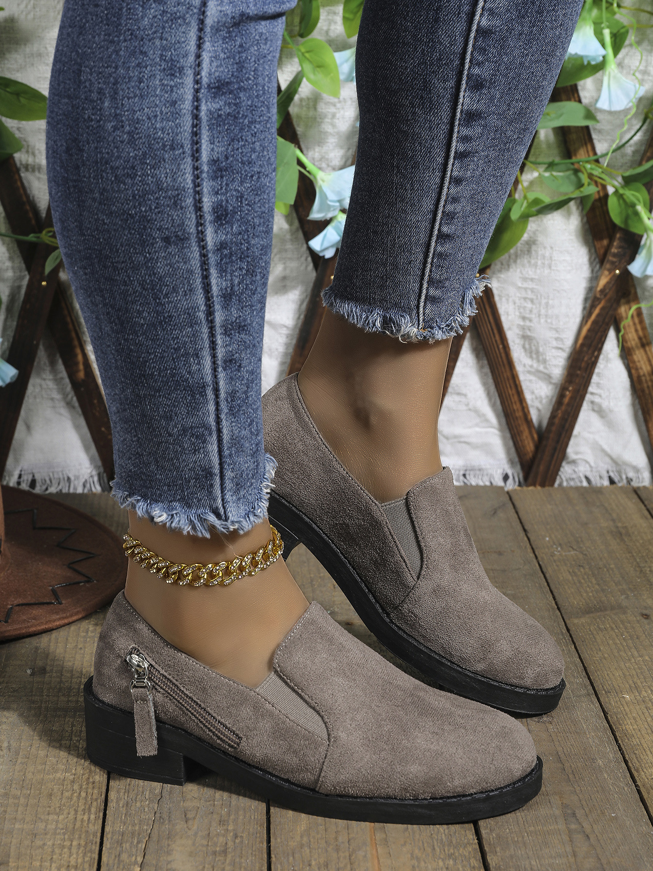 대외 무역 플러스 사이즈 2024 지퍼를 가진 여성을위한 새로운 포인팅 영국 스타일 싱글 신발 장식 편안한 슬립 온 싱글 신발스토어 가기