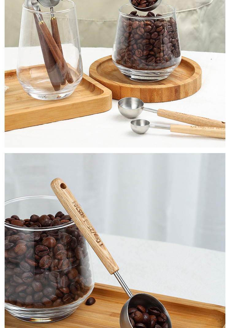 304 스테인레스 스틸 측정 숟가락 커피 측정 숟가락 호두 손잡이 숟가락 주방 구운 커피 콩 스푼