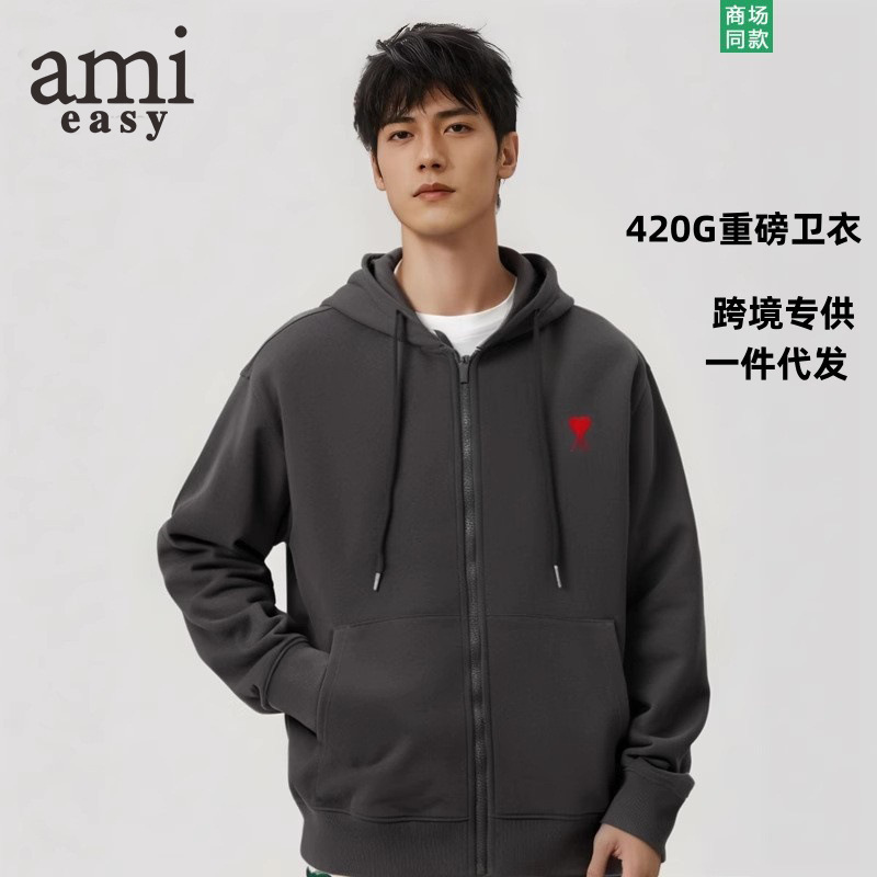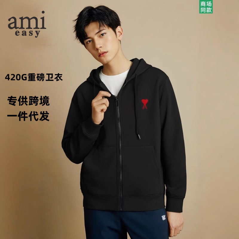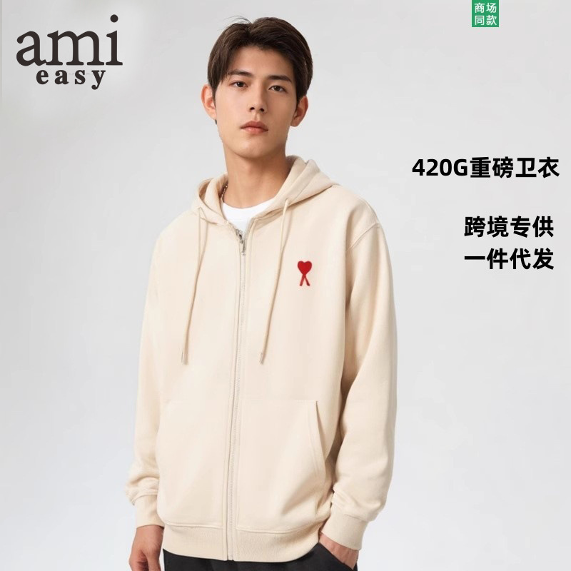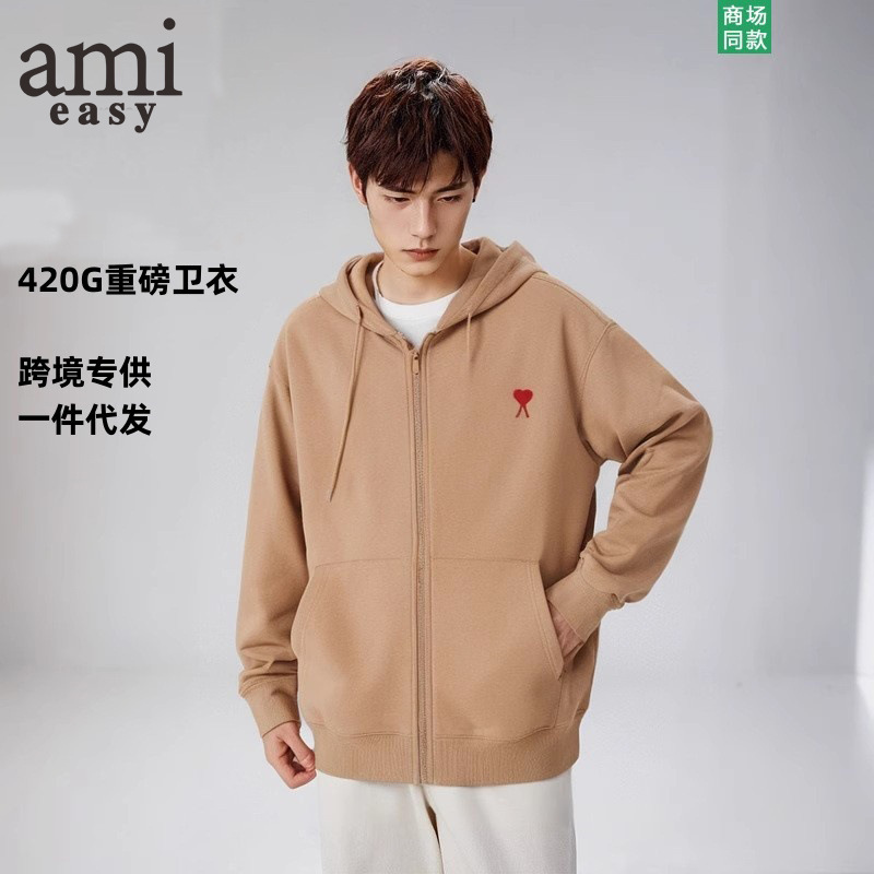 AMI&EASY 도매 정품 카디건 지퍼 하트 루즈핏 후드티 남성 스포츠 캐주얼 패션 상의스토어 가기
