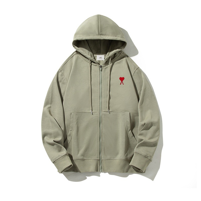 AMI&EASY 도매 정품 카디건 지퍼 하트 루즈핏 후드티 남성 스포츠 캐주얼 패션 상의