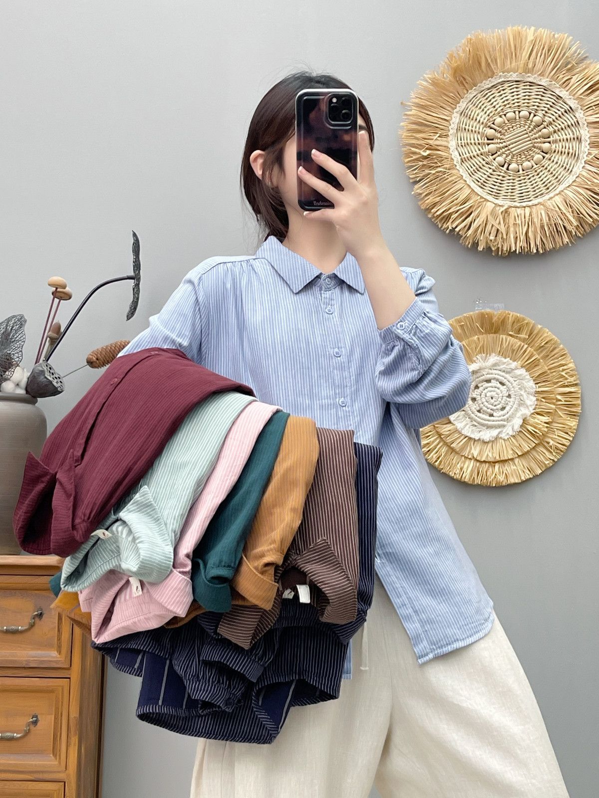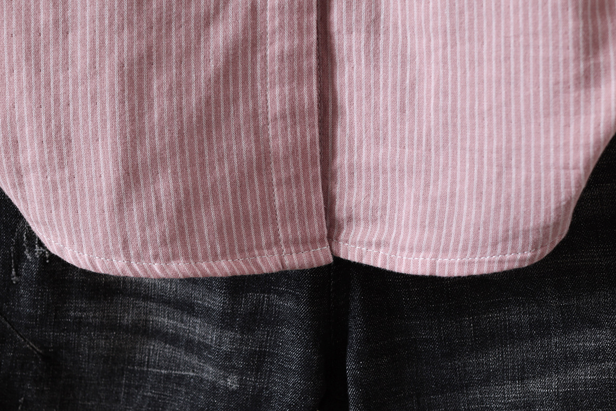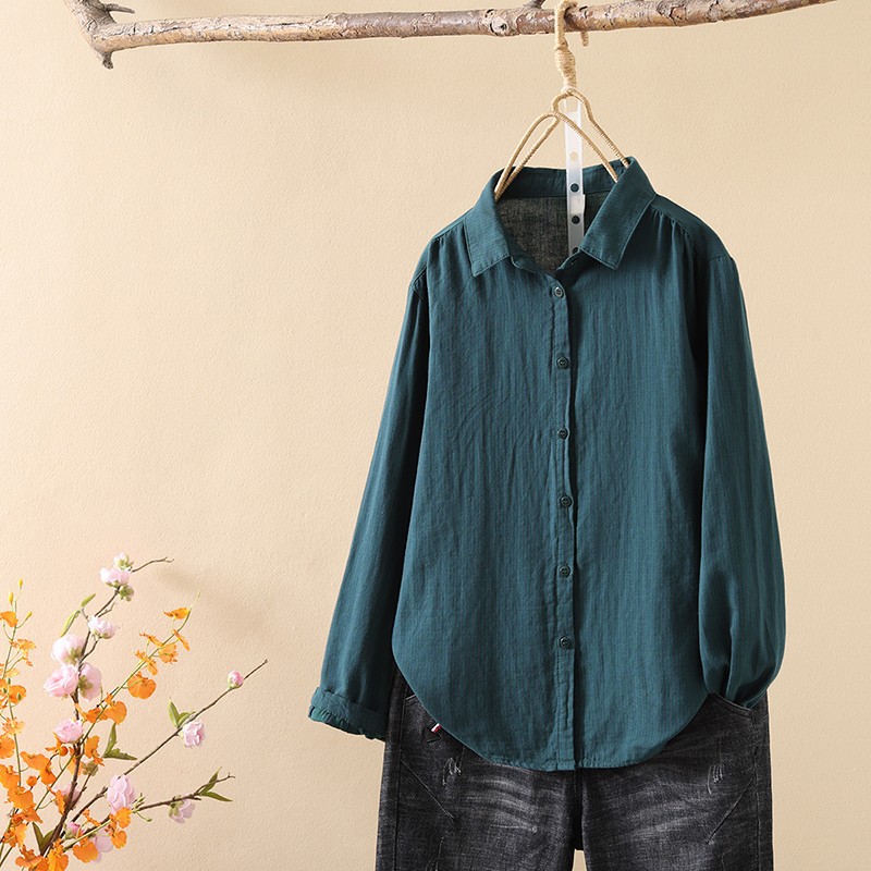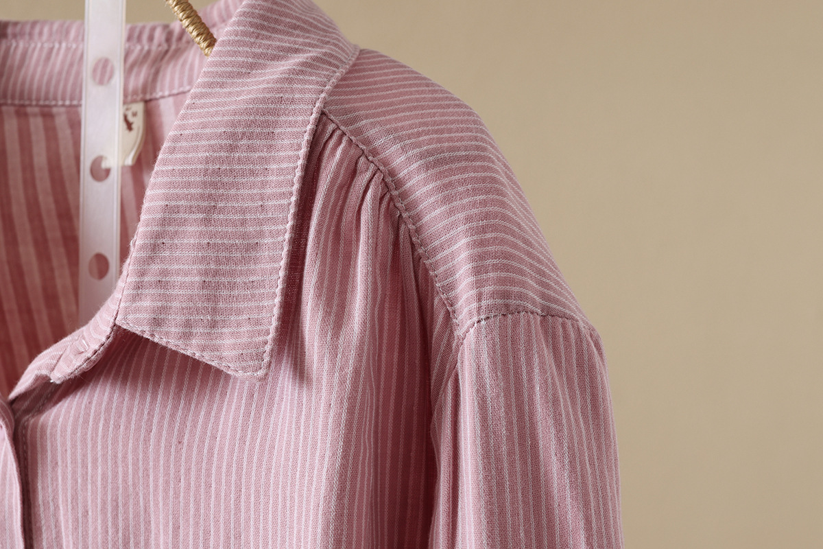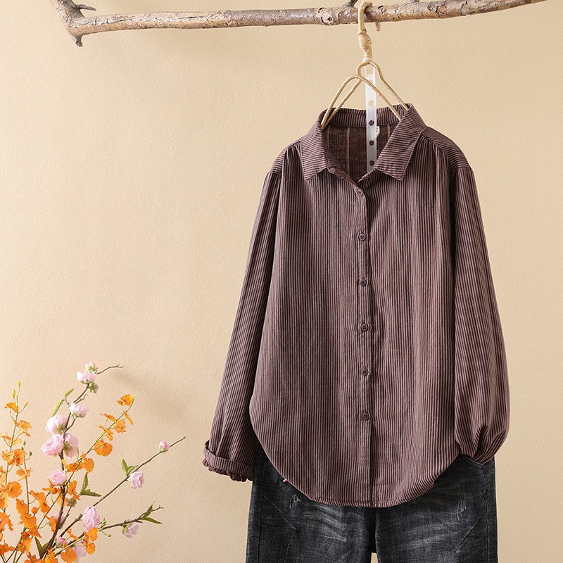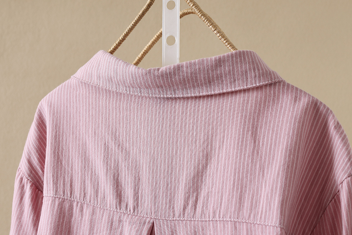 한국식 신형 면 셔츠 여성용 긴팔 줄무늬 셔츠 루즈 여성용 더블 레이어 코튼 원사 긴팔 캐주얼 탑스토어 가기