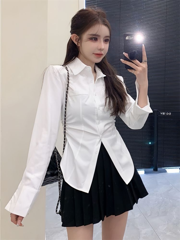 • 화이트 웨이스트 긴팔 싱글 셔츠