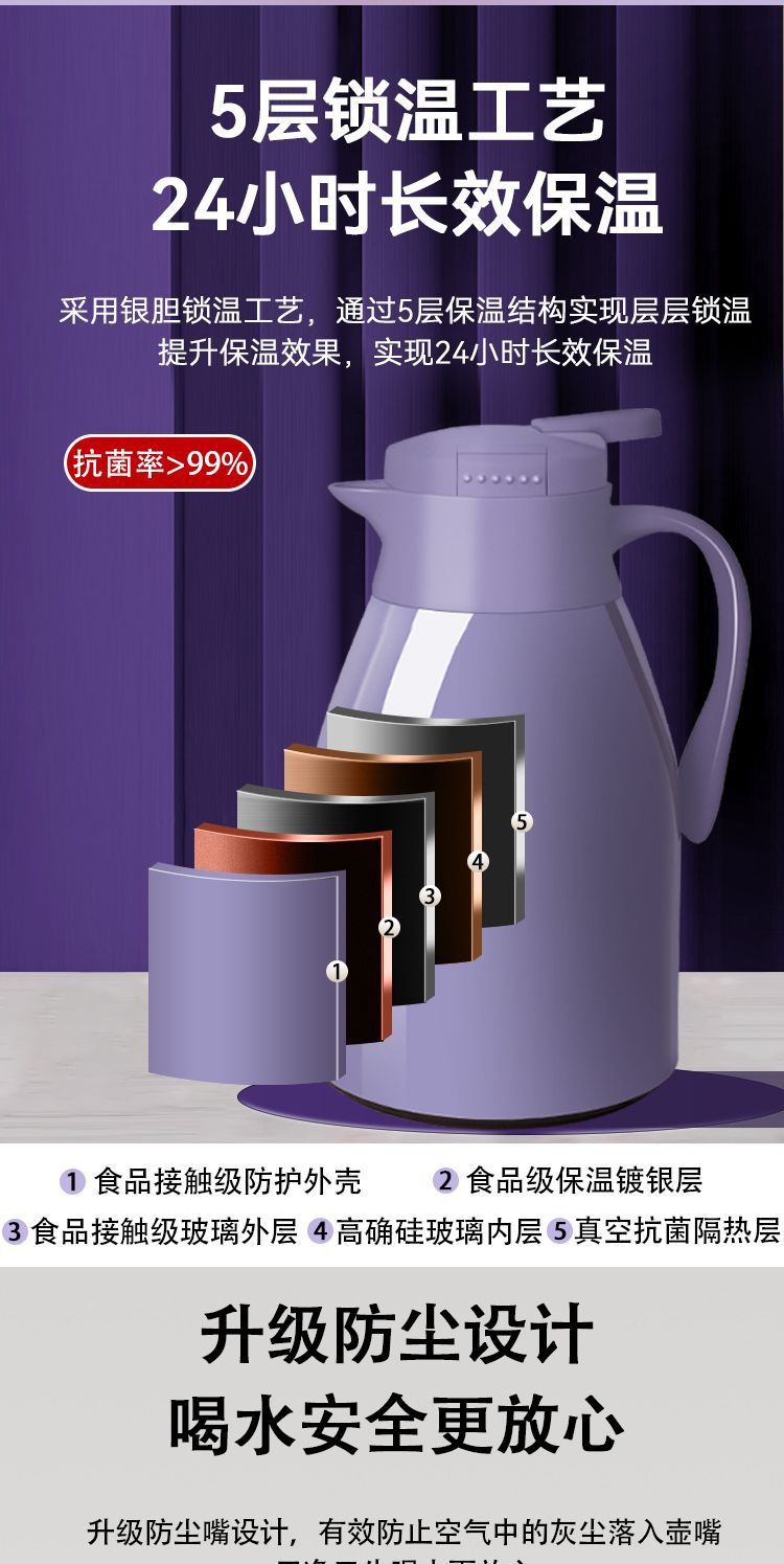 단열 주전자 가정용 단열 주전자 새로운 대용량 보온병 유리 주전자 라이너 온수 주전자 사무실 찻병스토어 가기