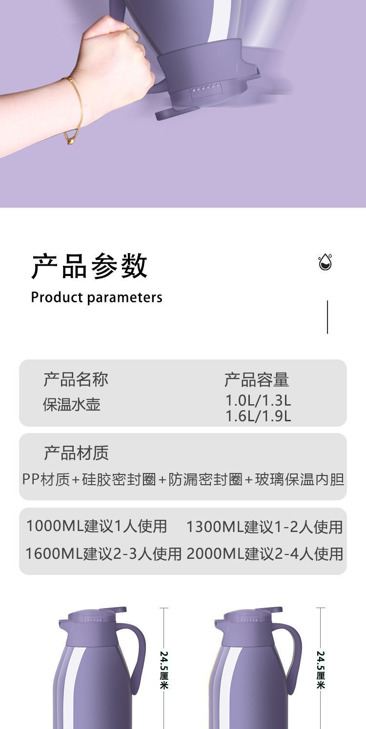 단열 주전자 가정용 단열 주전자 새로운 대용량 보온병 유리 주전자 라이너 온수 주전자 사무실 찻병