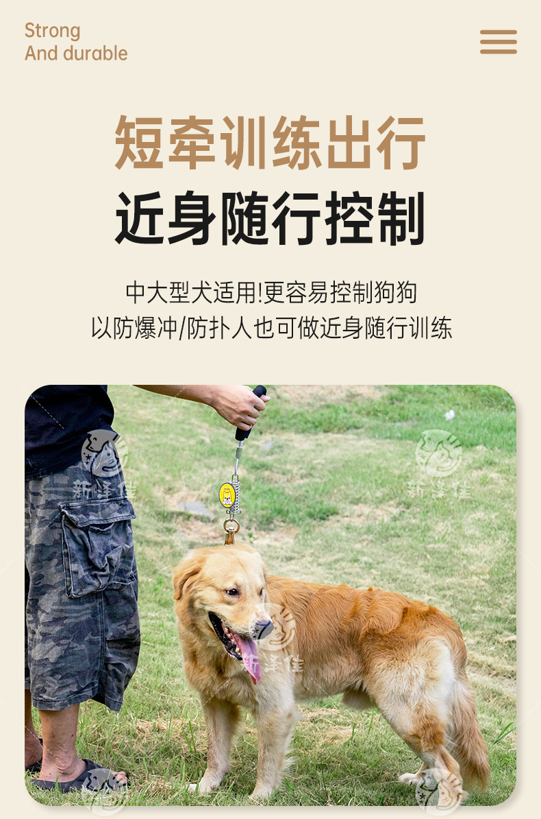 개 폭발 방지 짧은 견인 밧줄 탄성 개 걷는 밧줄 중형 및 대형 개 망원경 쿠션 짧은 황금 리트리버 개 체인