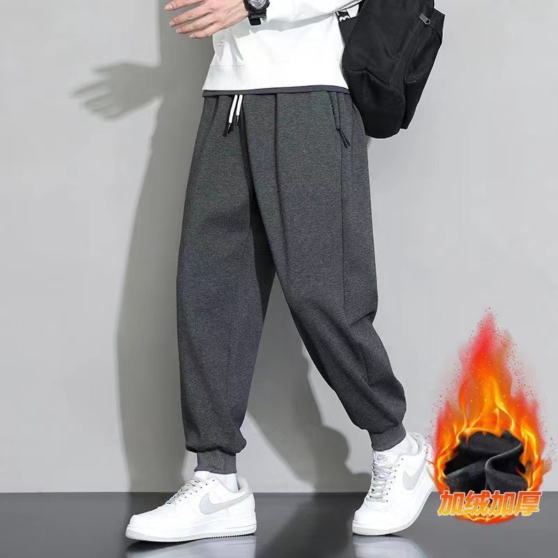 Wei 바지 가을과 겨울 남성용 면화 바지 남자 스타일 캐주얼 바지 다리 발가락 느슨한 기모 두꺼운 스포츠 바지스토어 가기