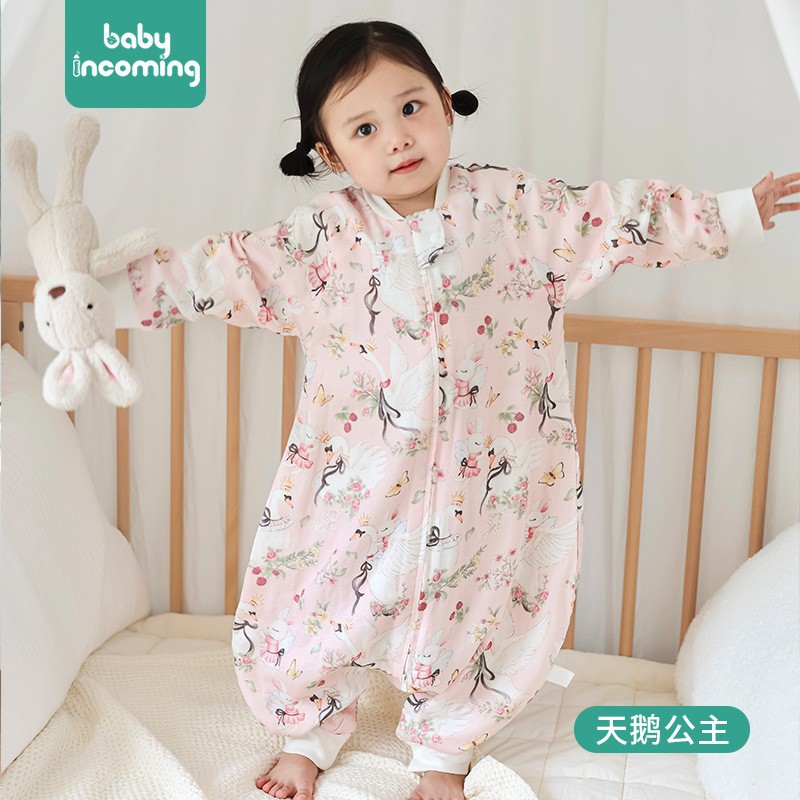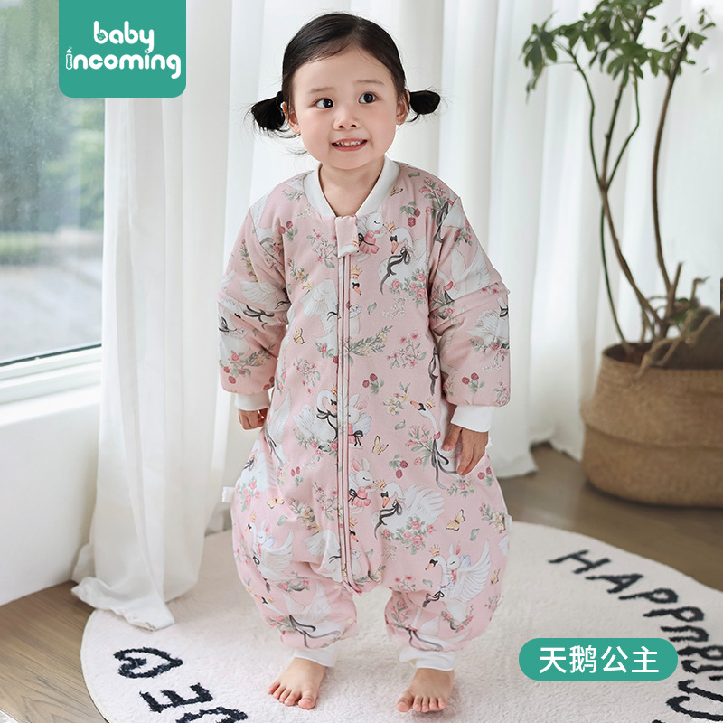 어린이용 침낭, 탈부착 가능한 소매, 두꺼운 분리형 다리 잠옷, 가을 겨울용 아기 A급 순면 잠옷, 항균 및 발열 이불