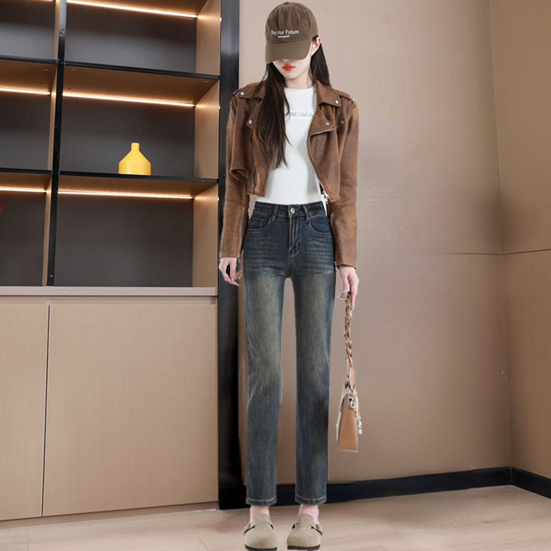 여성용 스트레이트 데님 팬츠, 9부 기장, 하이웨이스트, 신축성, 2026 봄/가을 신상, 다용도, 슬림핏, 루즈핏스토어 가기