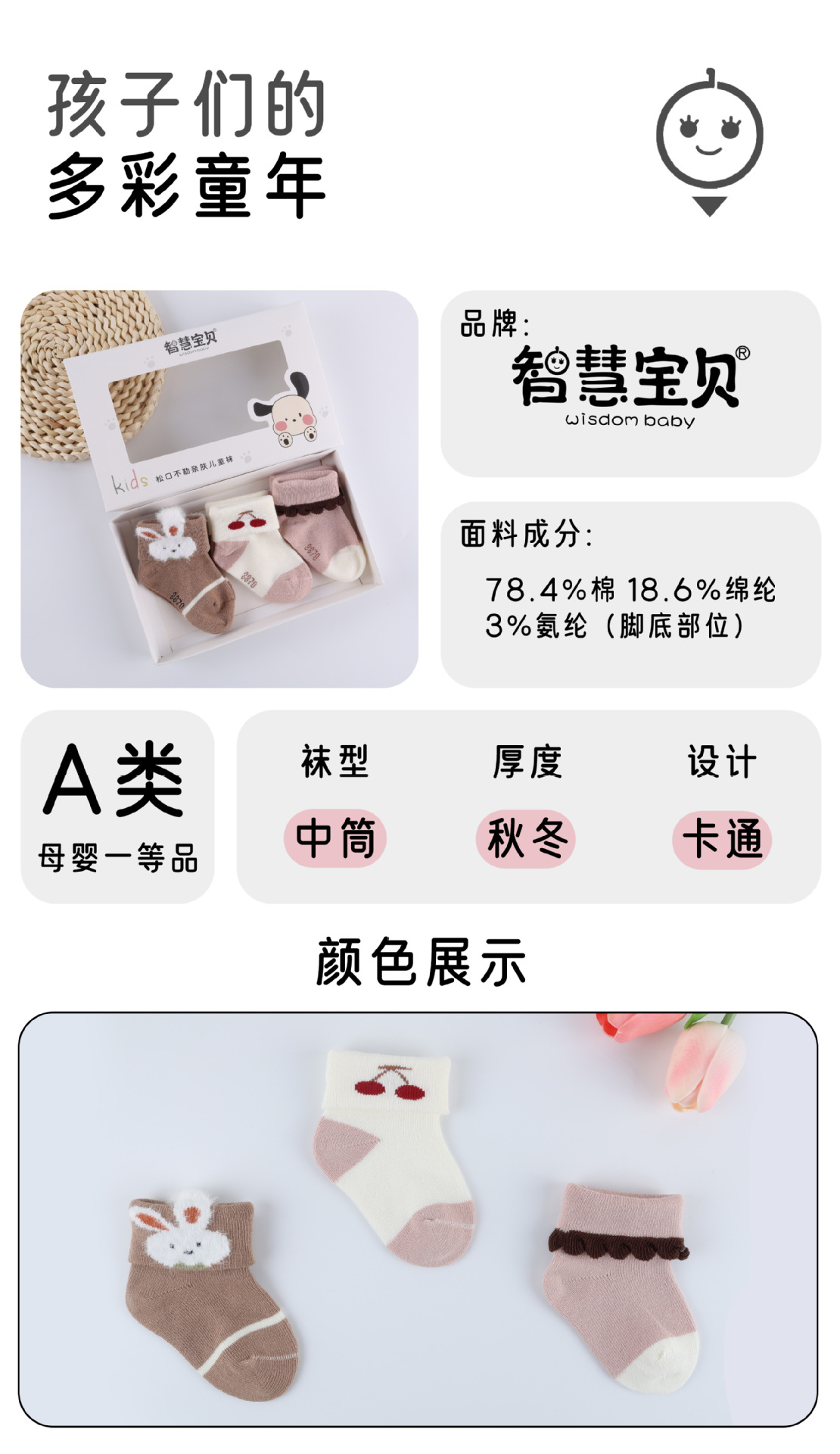 0-6개월 선물세트 가을/겨울용 귀여운 아기 양말 무봉제 A급 유아 양말