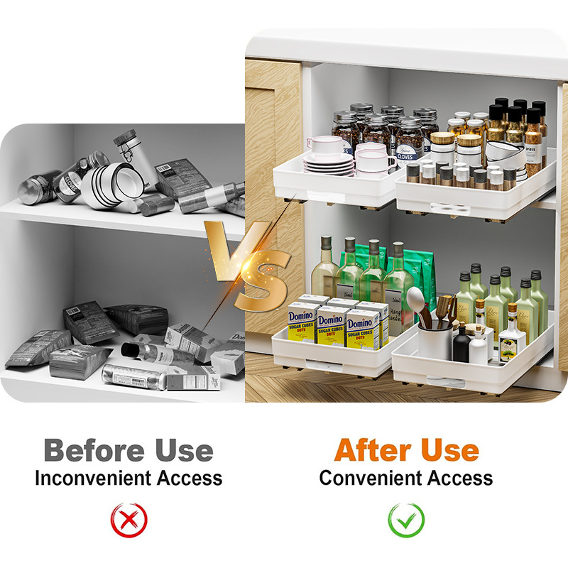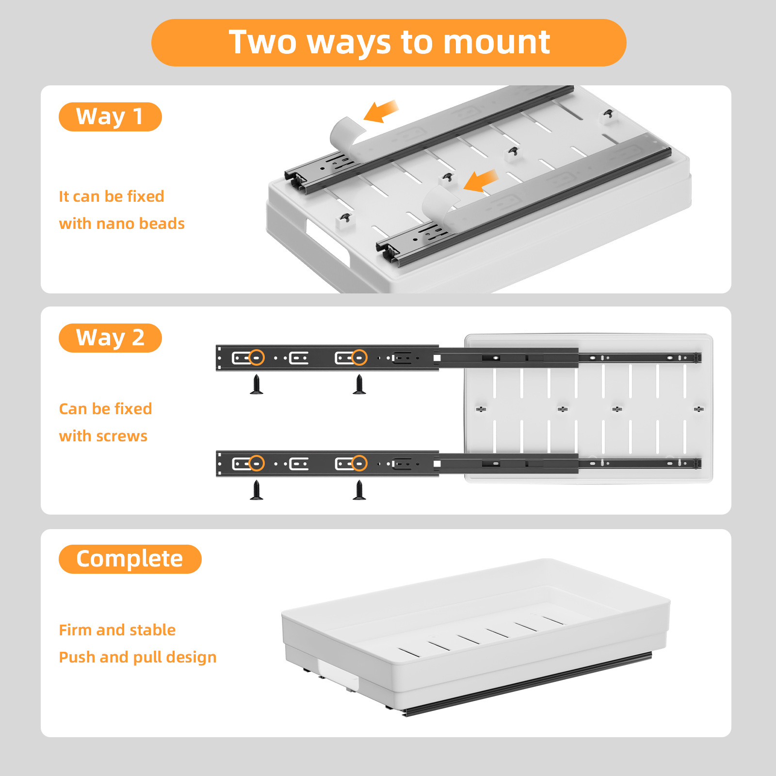 싱크대 아래 펀칭 없는 주방 풀아웃 수납선반, 접이식 바구니, 캐비닛 슬라이드 레일, 슬라이딩 서랍 양념통