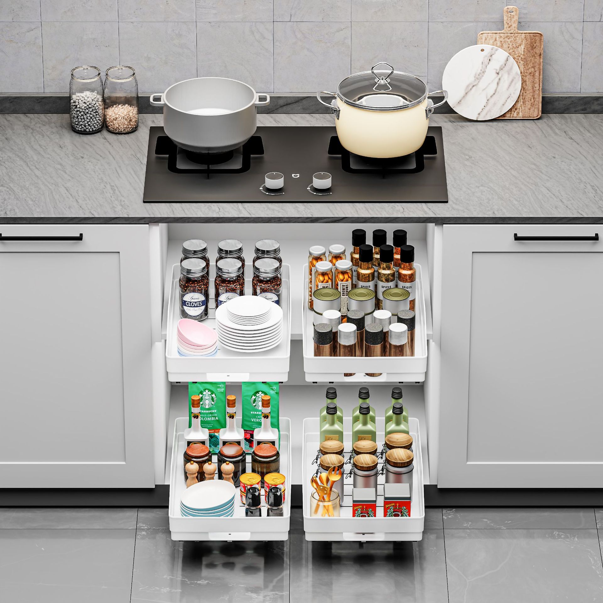 싱크대 아래 펀칭 없는 주방 풀아웃 수납선반, 접이식 바구니, 캐비닛 슬라이드 레일, 슬라이딩 서랍 양념통스토어 가기