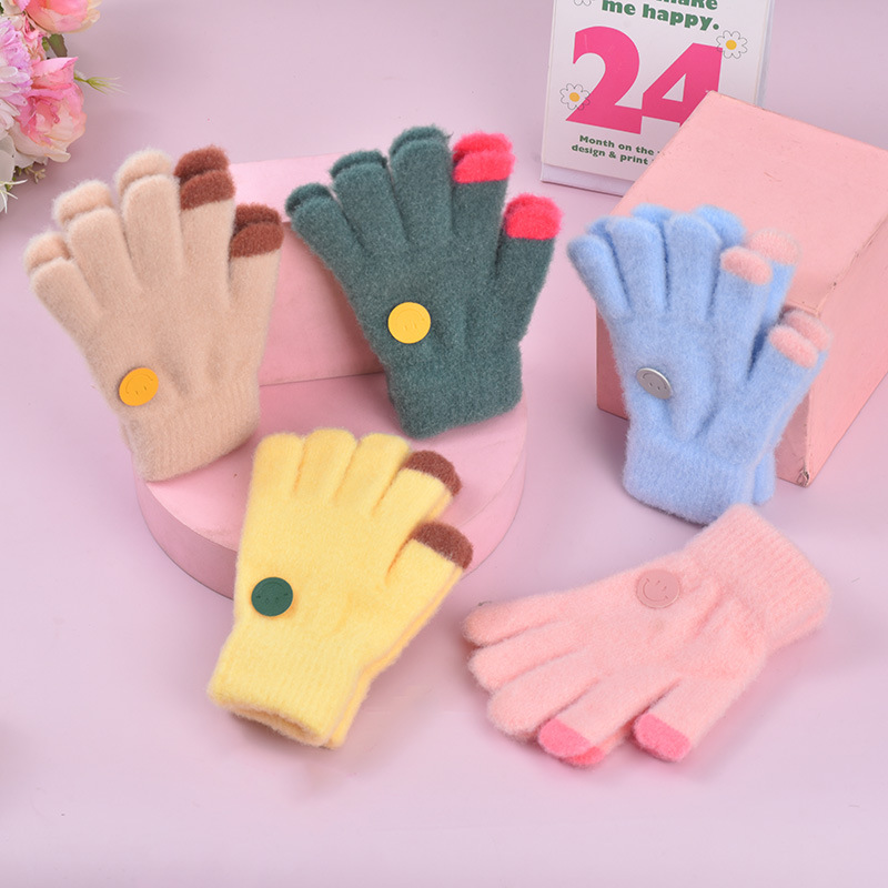 어린이 장갑 학생 야외 니트 5 손가락 장갑 겨울 남학생과 여학생을위한 따뜻한 봉제 스트레치 손가락 장갑