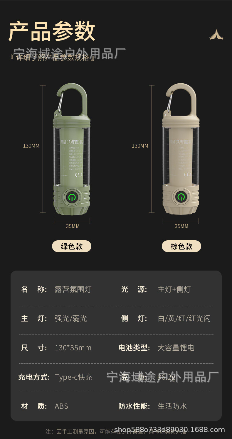 • 카키색 캠핑 램프 + 내장 배터리 + 데이터 케이블 + 컬러 박스