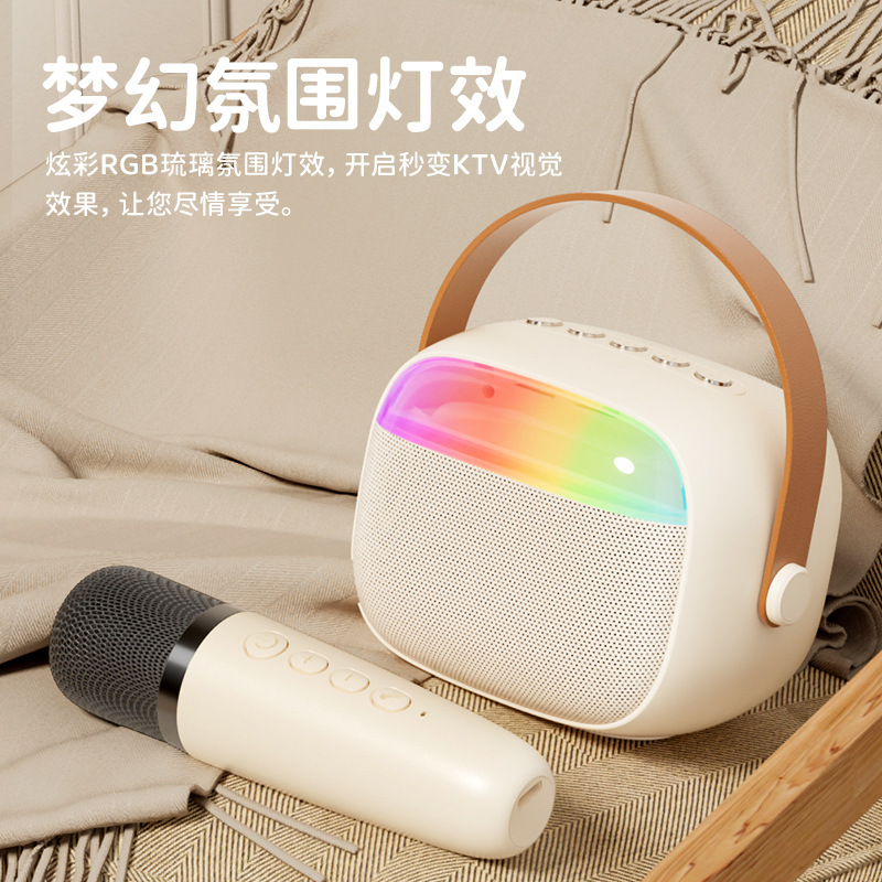 K12 블루투스 K-노래 통합 스피커 무선 마이크 휴대용 마이크 라이트 야외 어린이 홈 오디오 세트