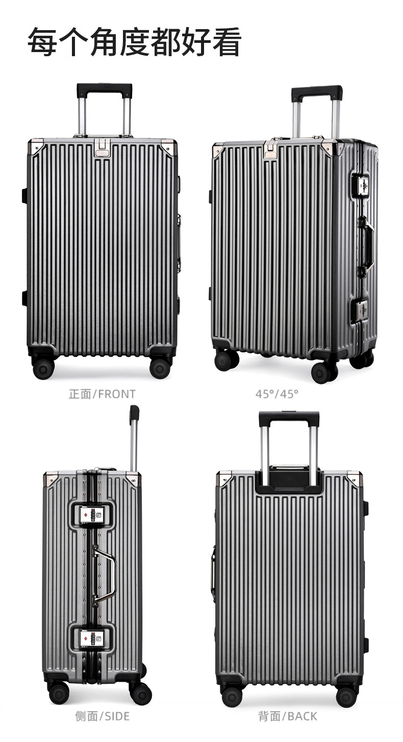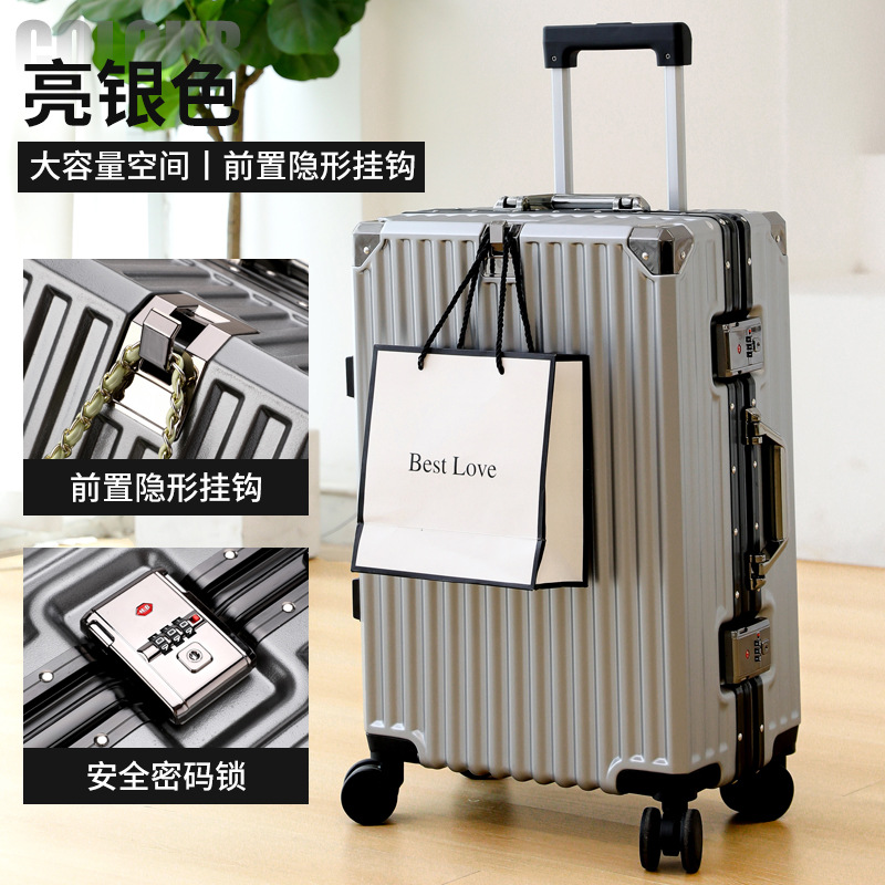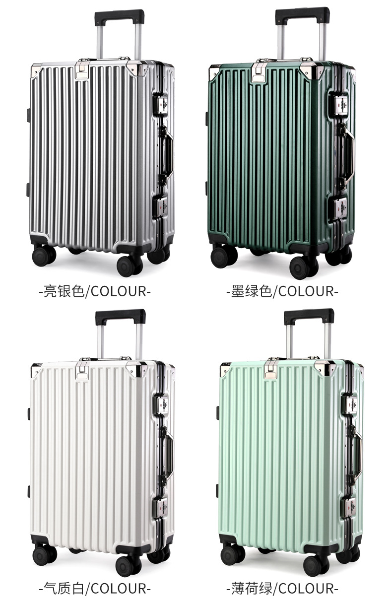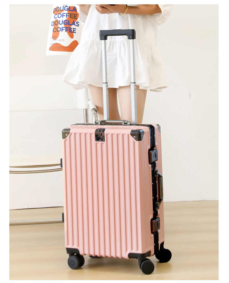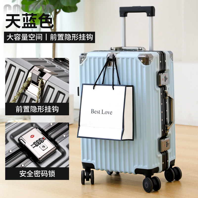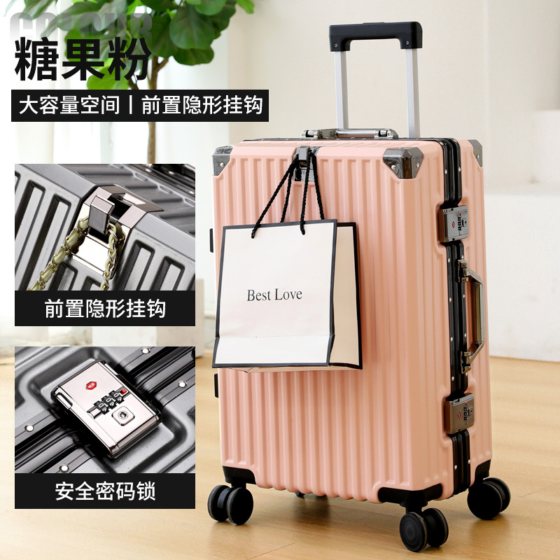 여학생을위한 패션 가방 20inch 트롤리 케이스 고가치 범용 휠 24inch 알루미늄 프레임 암호 가방 도매스토어 가기