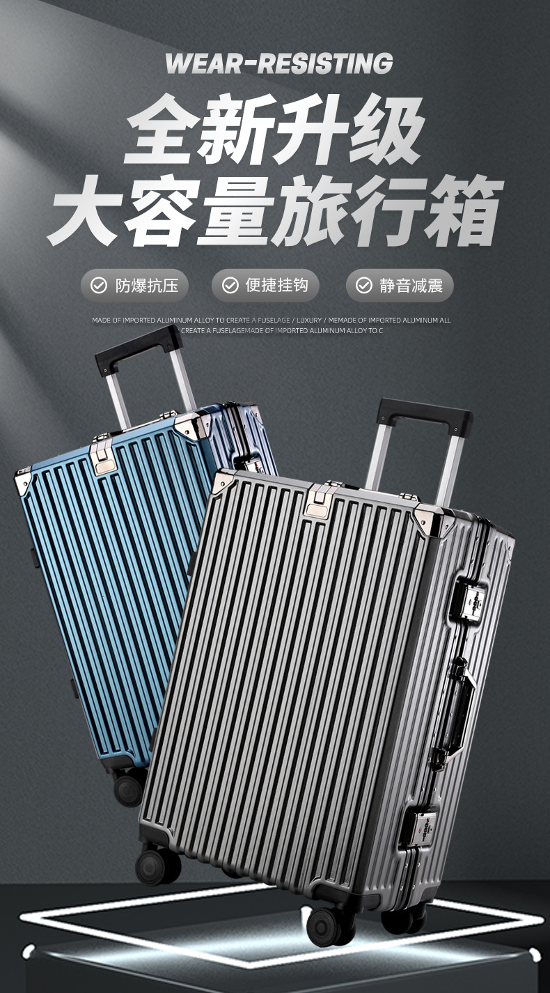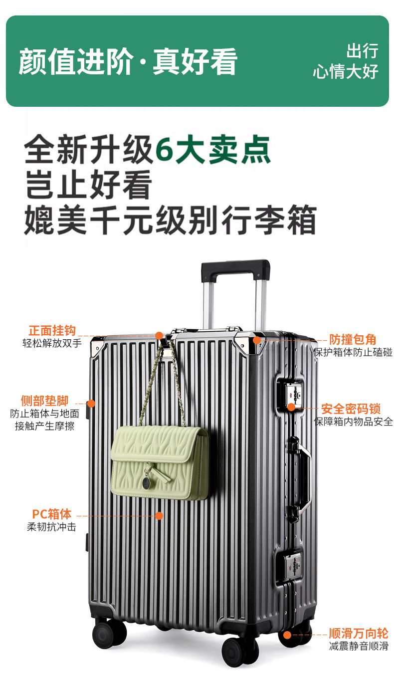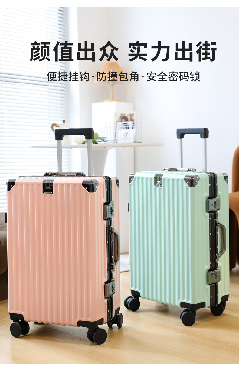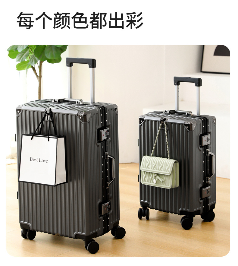 여학생을위한 패션 가방 20inch 트롤리 케이스 고가치 범용 휠 24inch 알루미늄 프레임 암호 가방 도매스토어 가기