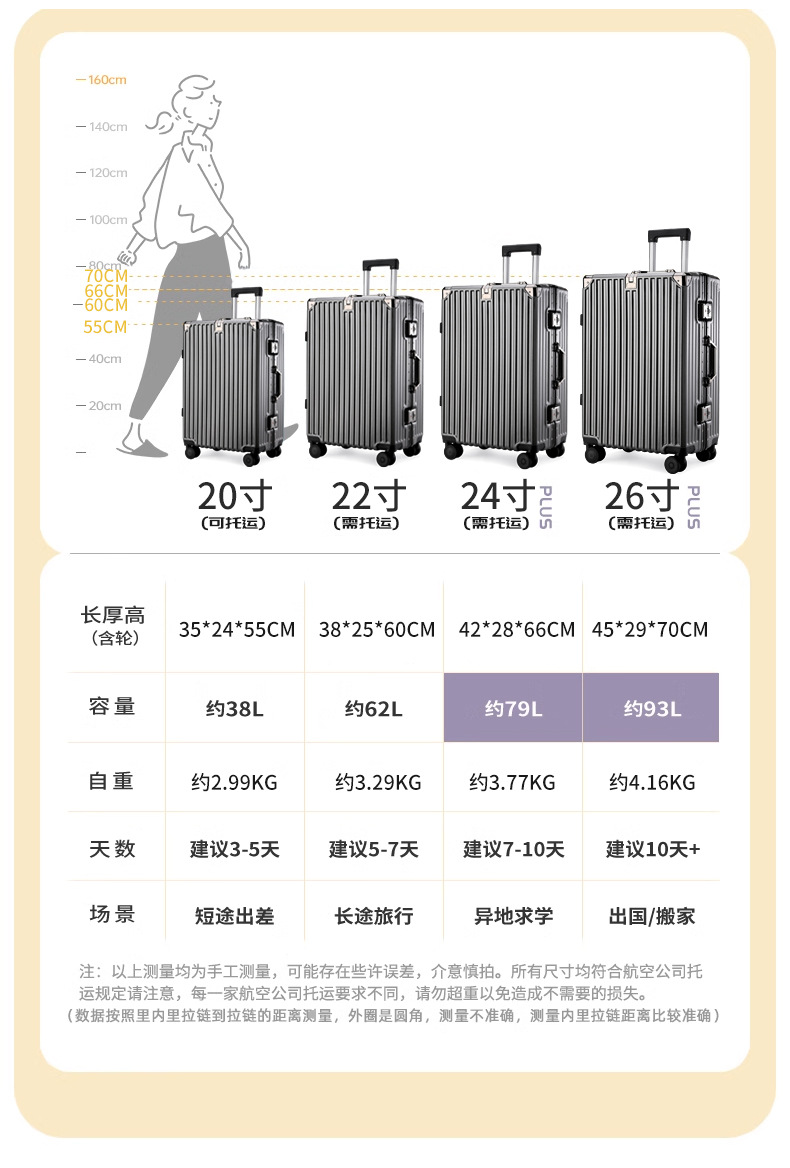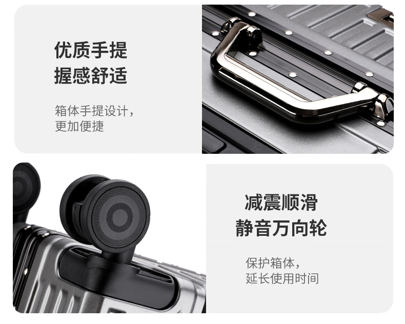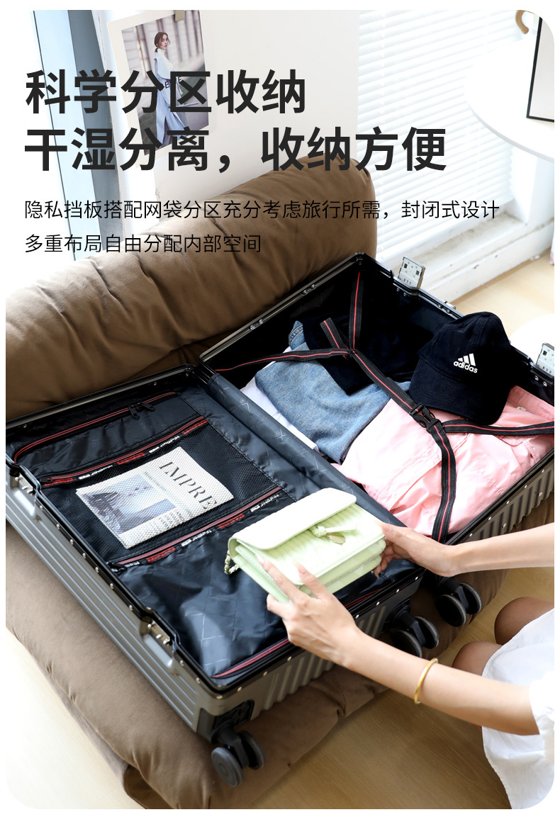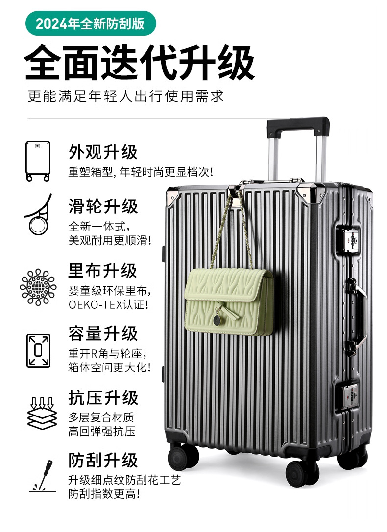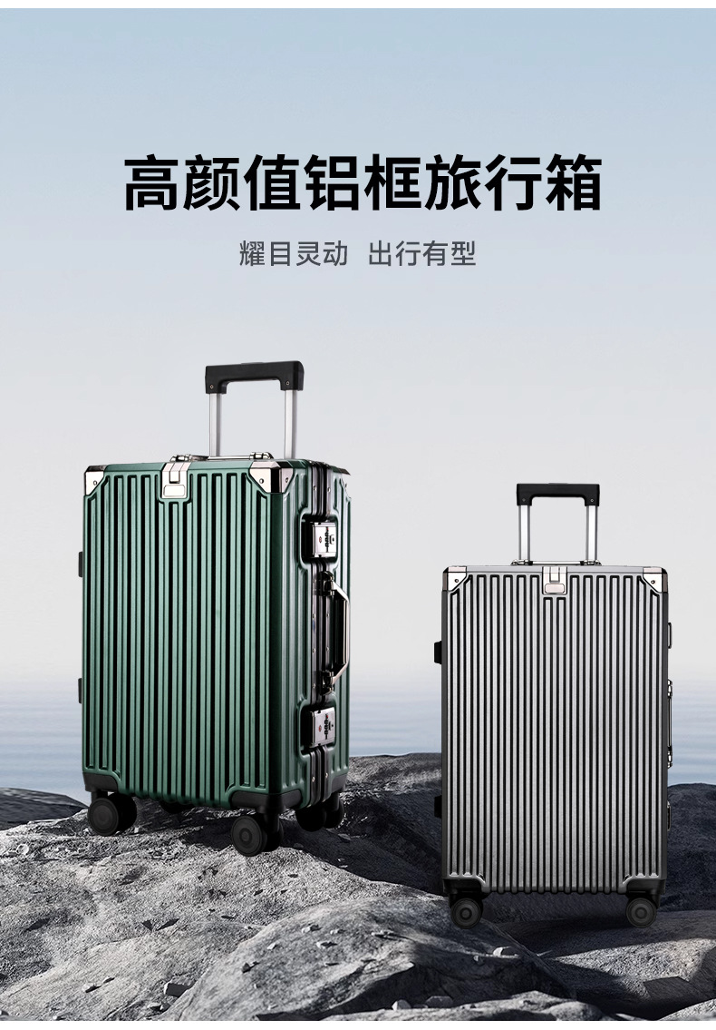 여학생을위한 패션 가방 20inch 트롤리 케이스 고가치 범용 휠 24inch 알루미늄 프레임 암호 가방 도매스토어 가기