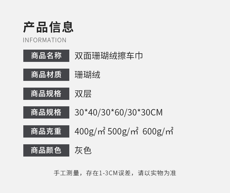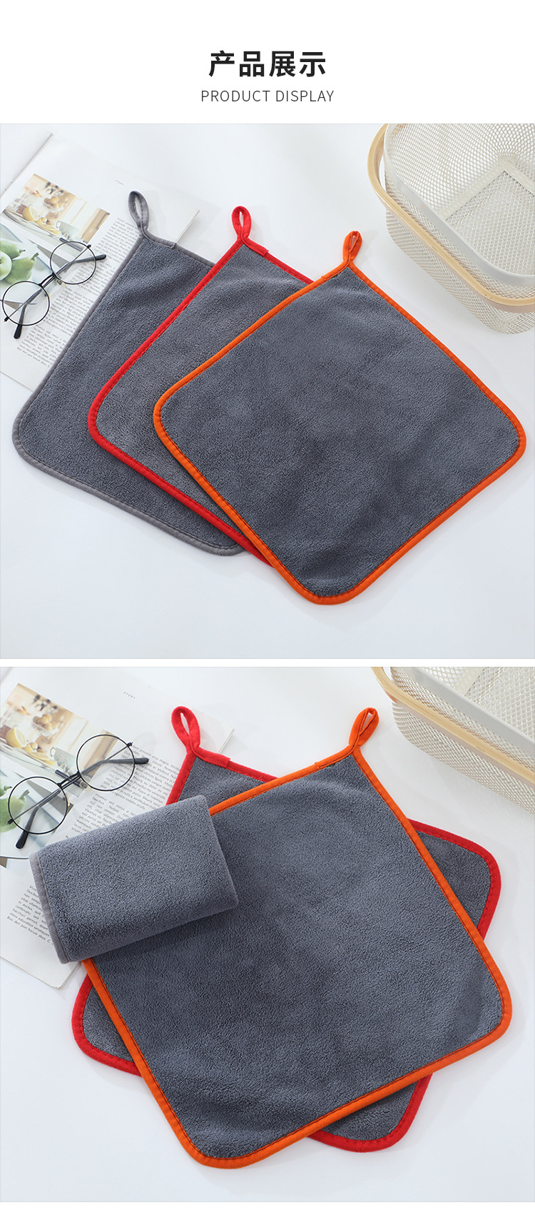 크로스보더 양면 회색 산호벨벳 자동차 닦는 타월, 흡수력 좋고 보풀이 잘 안나는 세차 타월, 자동차 닦는 타월, 크로스보더 수출용 두꺼운 타월