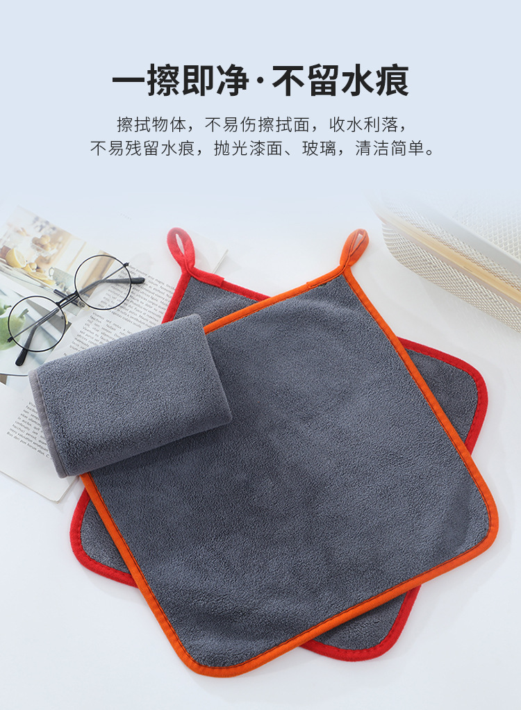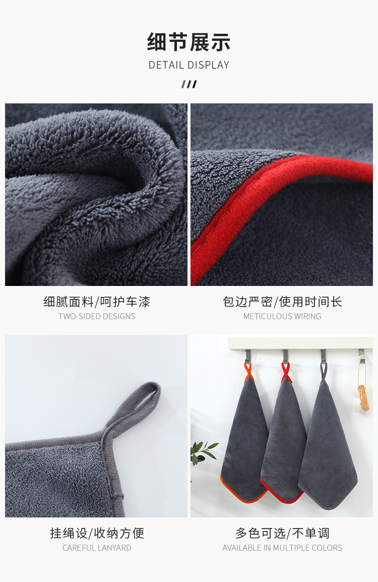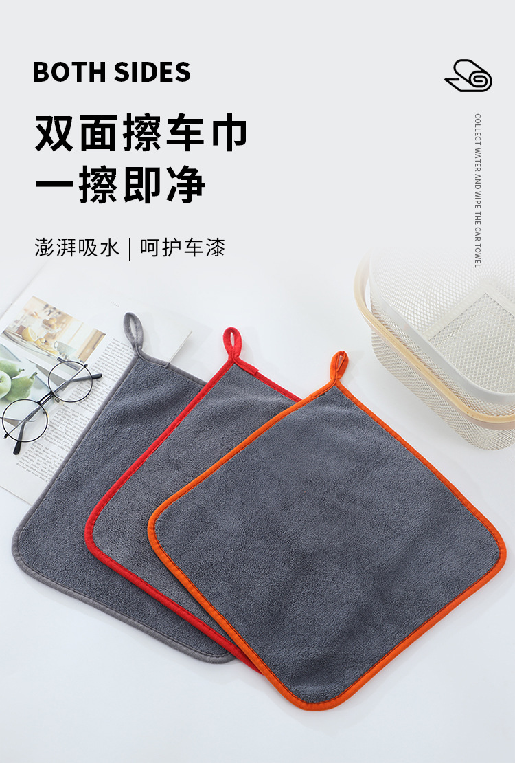 크로스보더 양면 회색 산호벨벳 자동차 닦는 타월, 흡수력 좋고 보풀이 잘 안나는 세차 타월, 자동차 닦는 타월, 크로스보더 수출용 두꺼운 타월스토어 가기