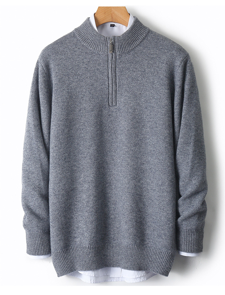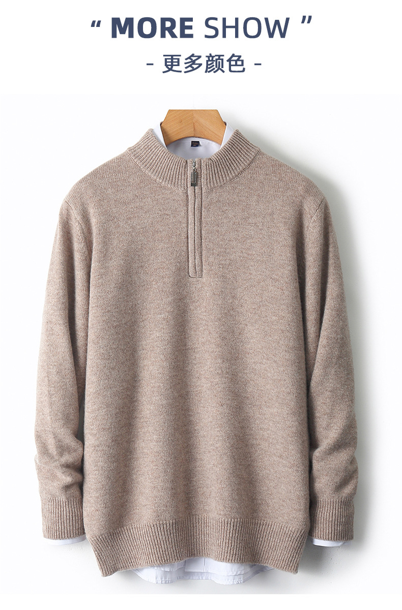남자 2024 가을/겨울 새 레저 통근 소프트 왁스 순수 울 반 높이 지퍼 스웨터 플러스 사이즈