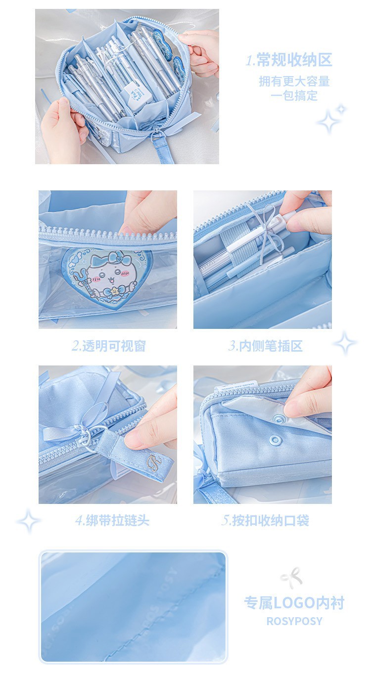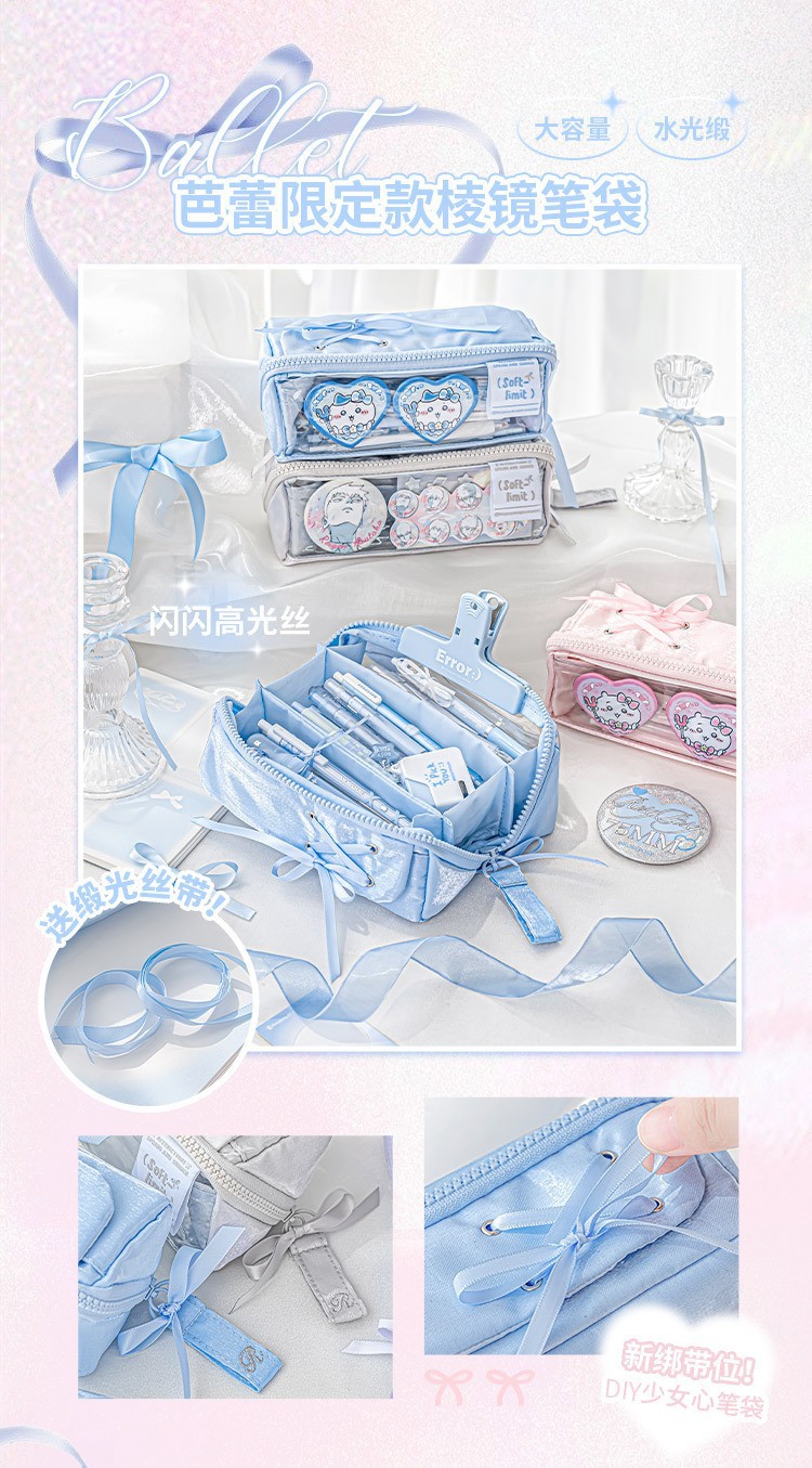 RosyPosy 2024 새로운 발레 스트랩 프리즘 연필 가방 대용량 높은 색상 가치 소녀의 통증 창 문구 가방스토어 가기