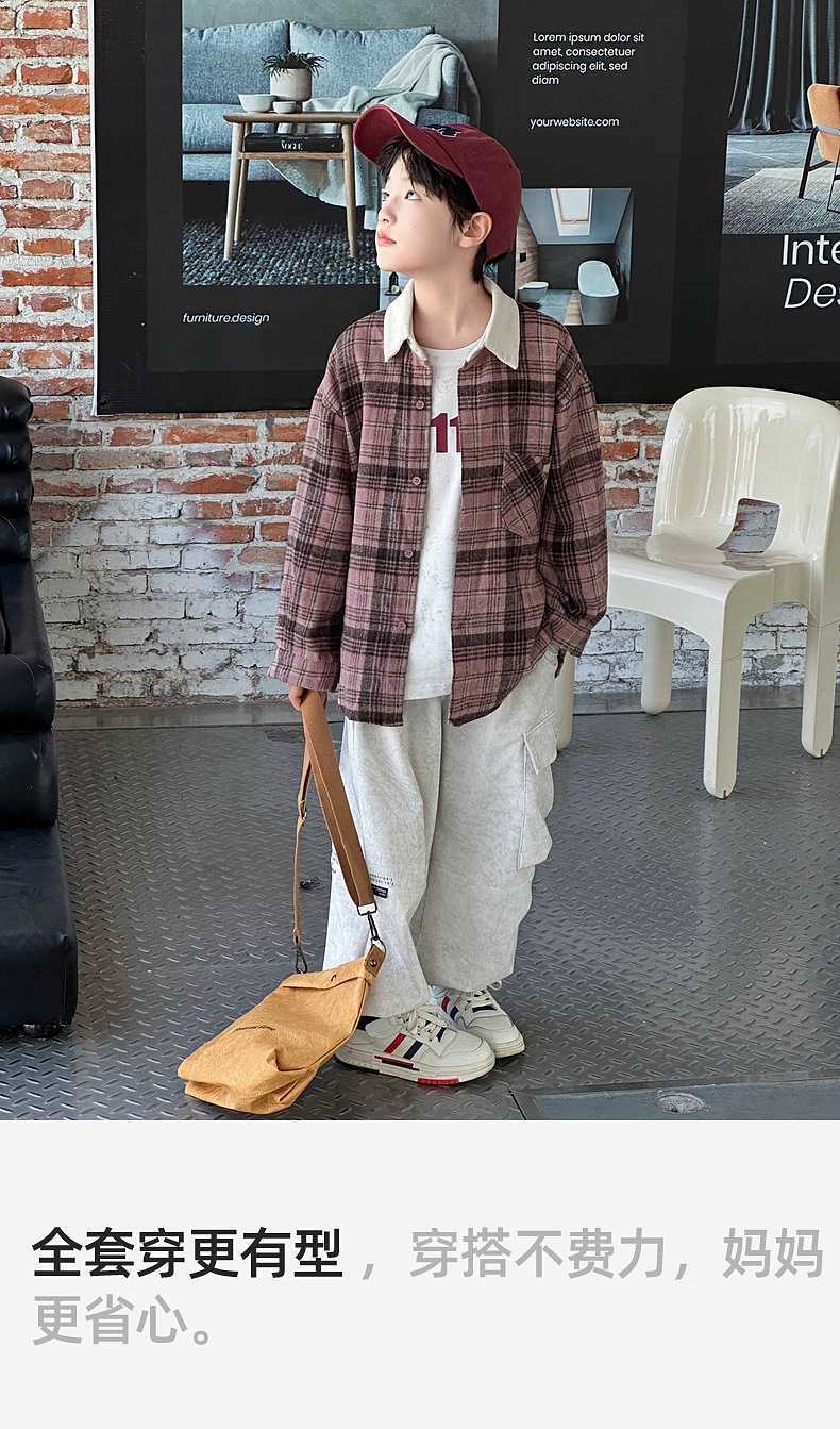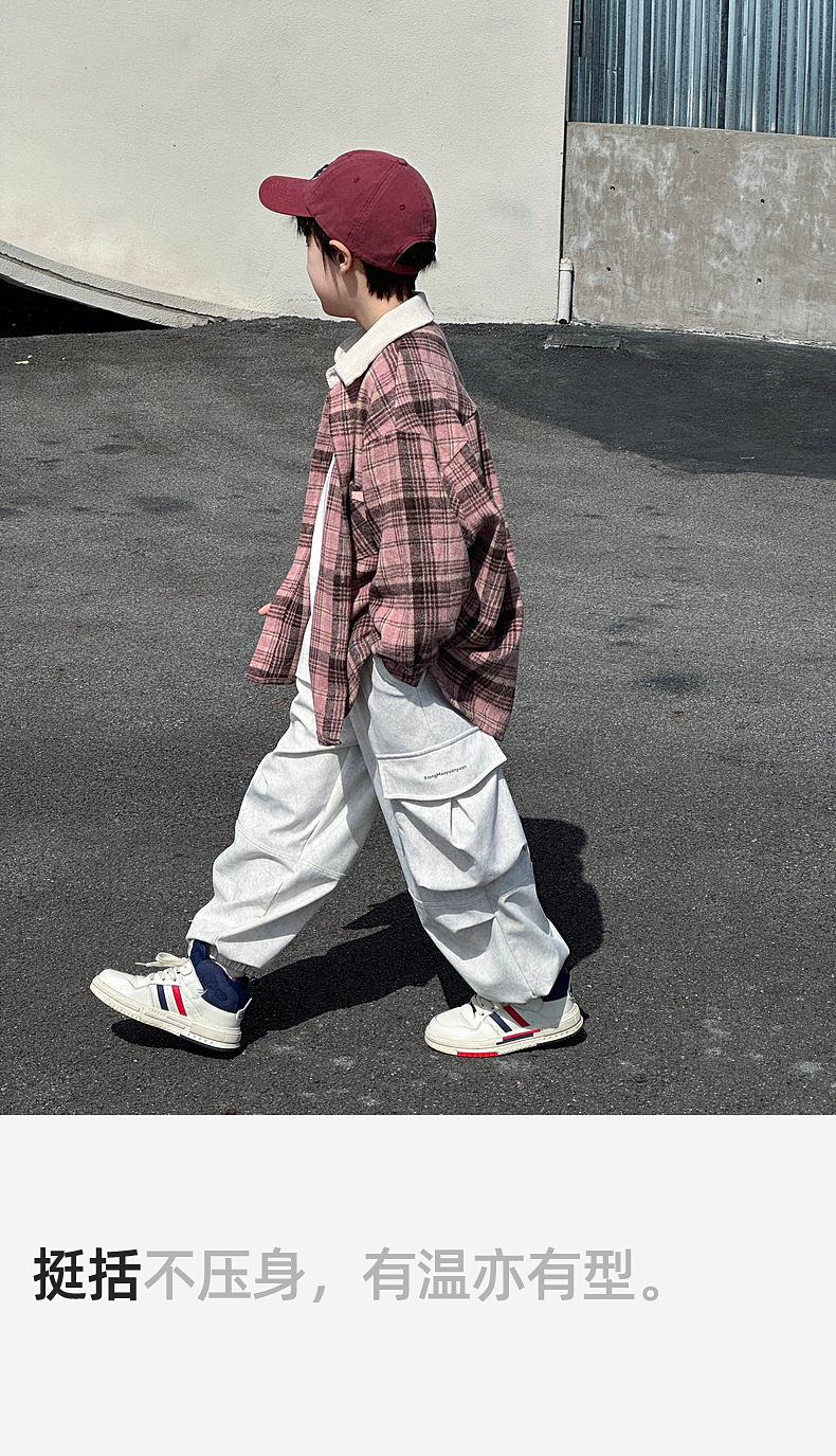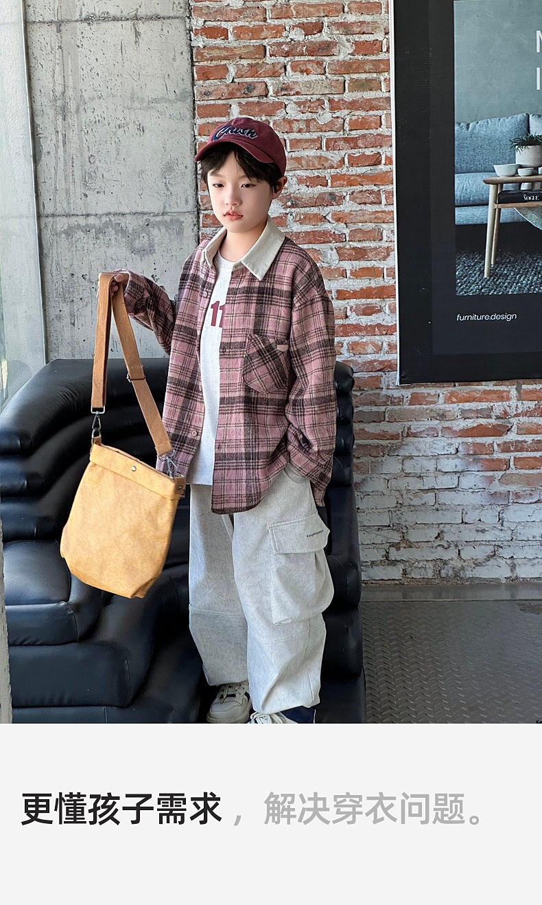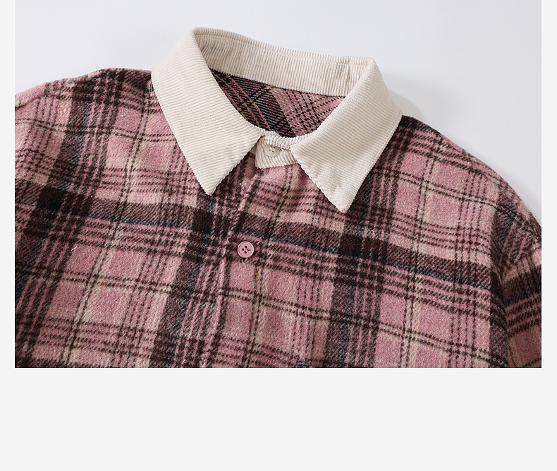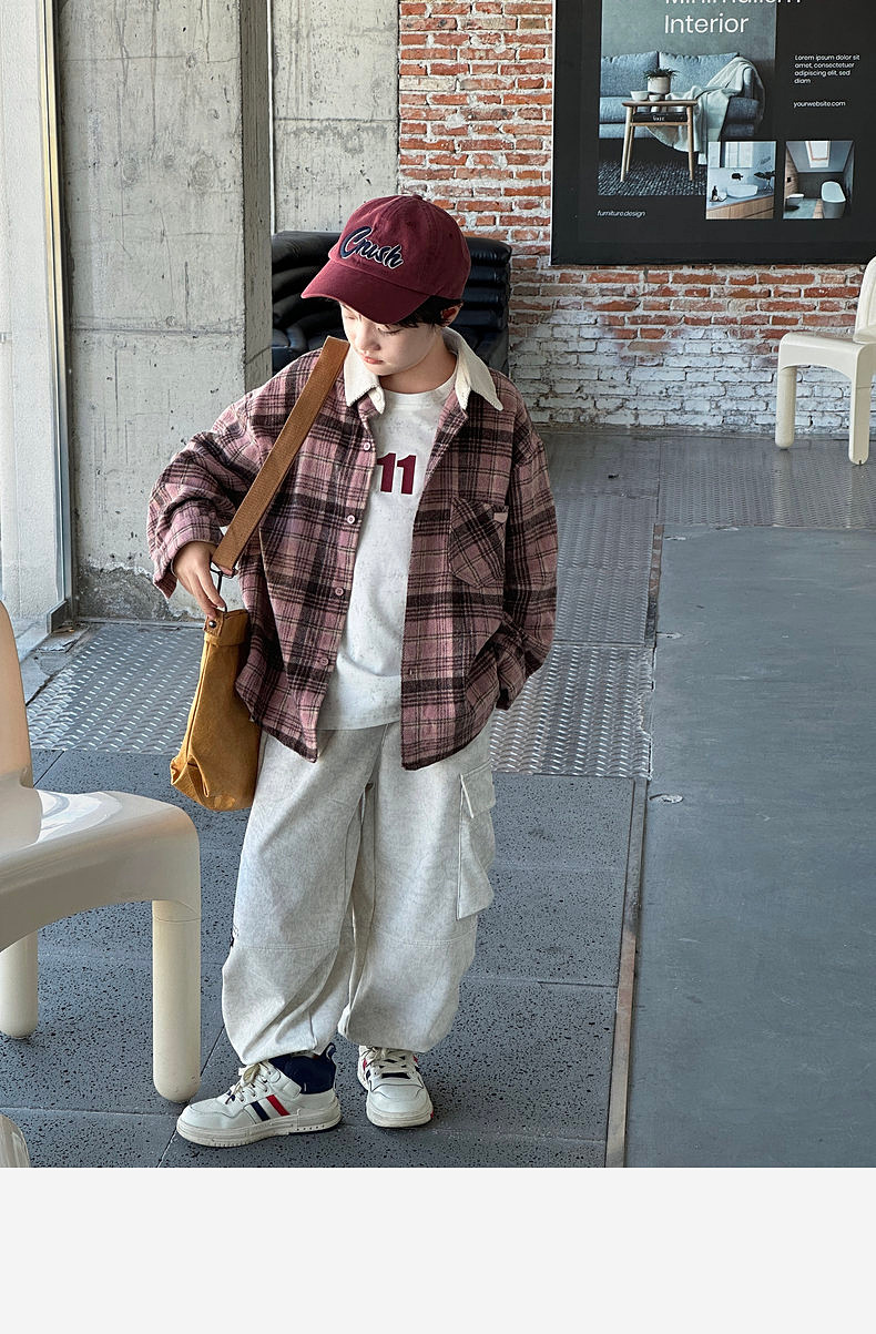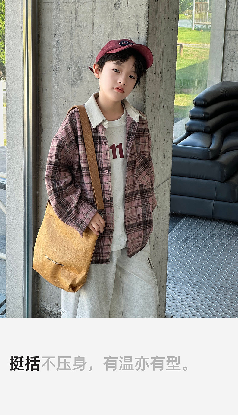 2024 새로운 따뜻한 양모 소년 격자 무늬 셔츠 재킷 판다 Yuanyuan 어린이 가을 모직 셔츠스토어 가기