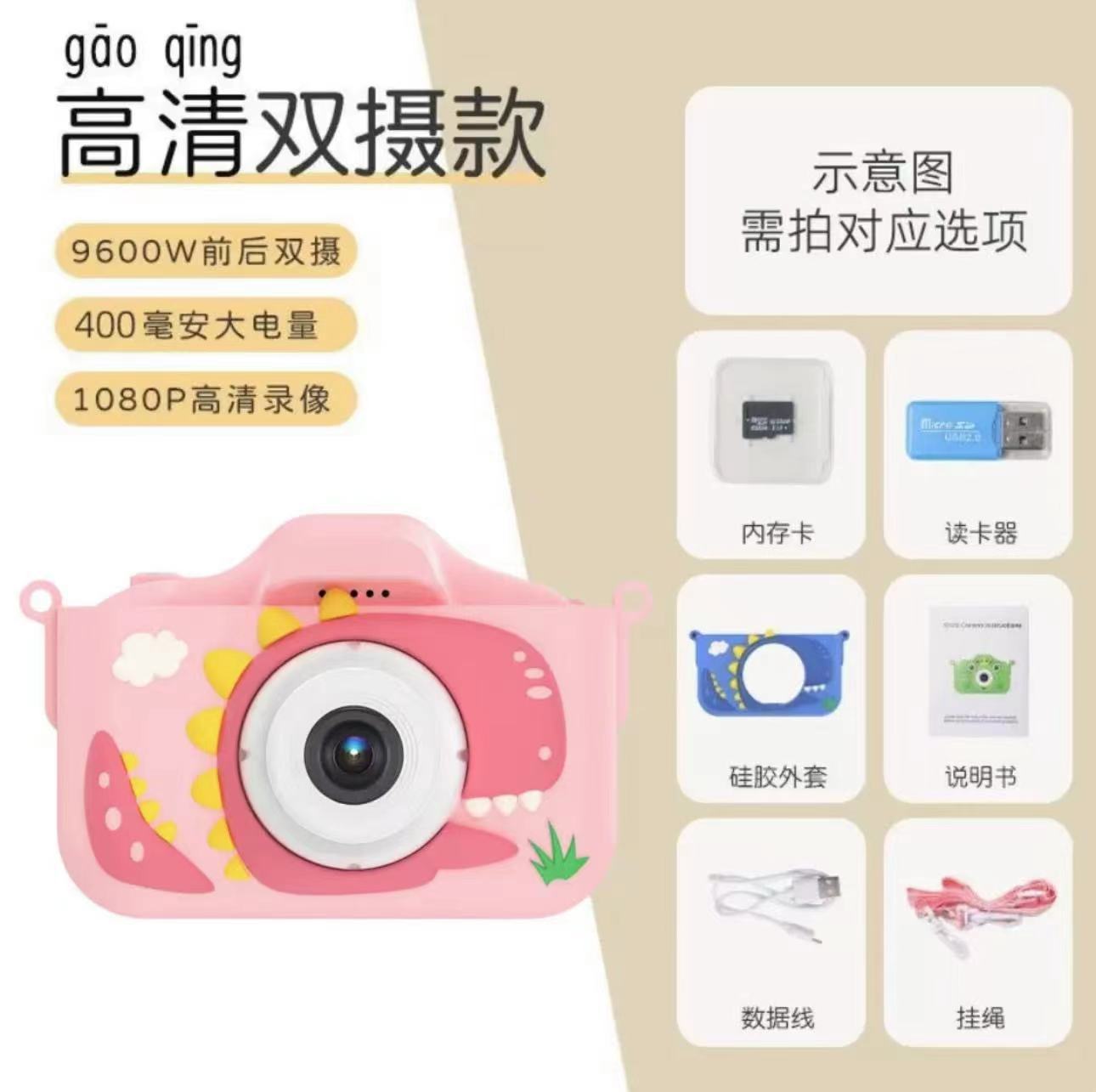 • 티라노사우루스 렉스 핑크 [HD 듀얼 카메라 9600W + 낙하 방지 케이스] (카드 없음)