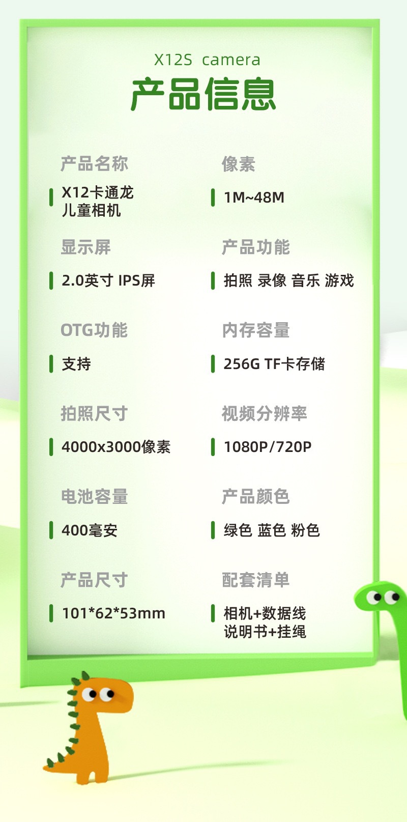 • 티라노사우루스 렉스 그린 [울트라 클리어 듀얼 카메라 9600W + 낙하 방지 케이스] + 64G