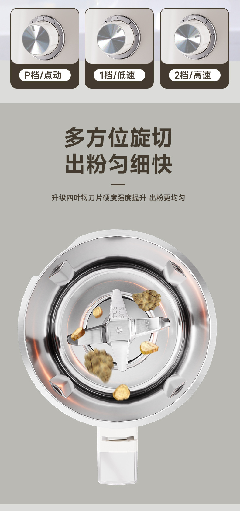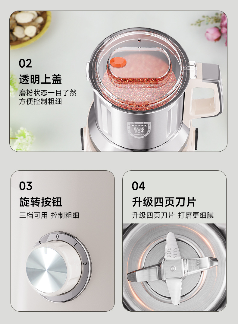 • 1200g 용량 습식 및 건식 대용량 304 스테인레스 스틸 컵 + 4날 칼