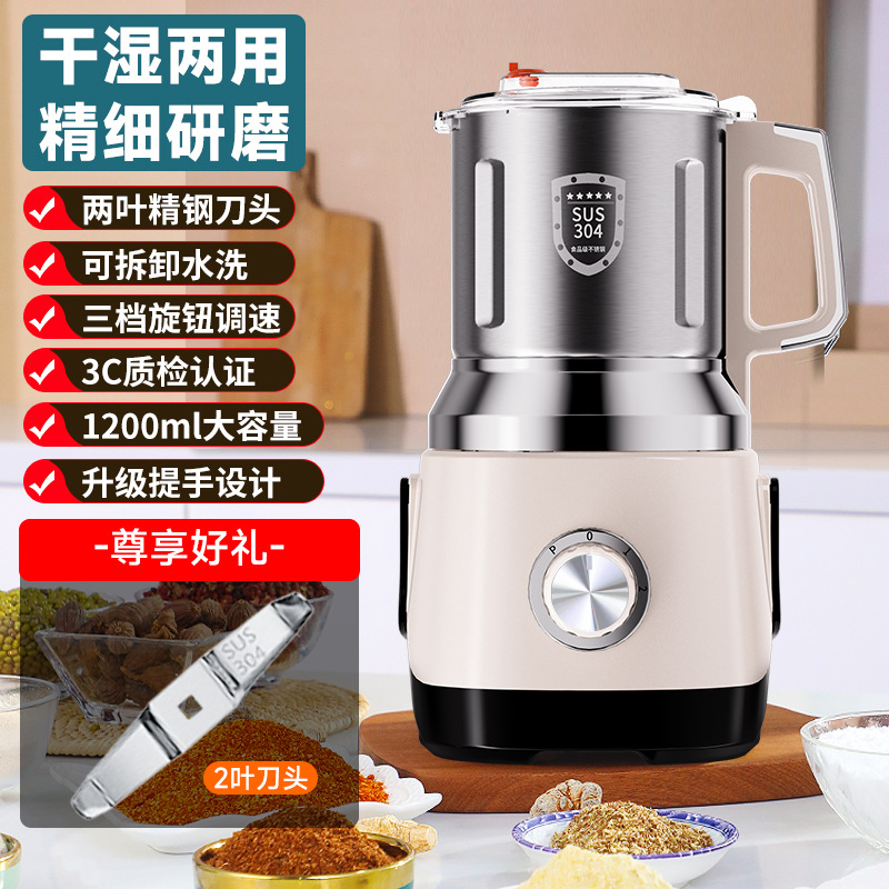 • 1200g 용량 습식 및 건식 대용량 304 스테인레스 스틸 컵 + 2날 칼