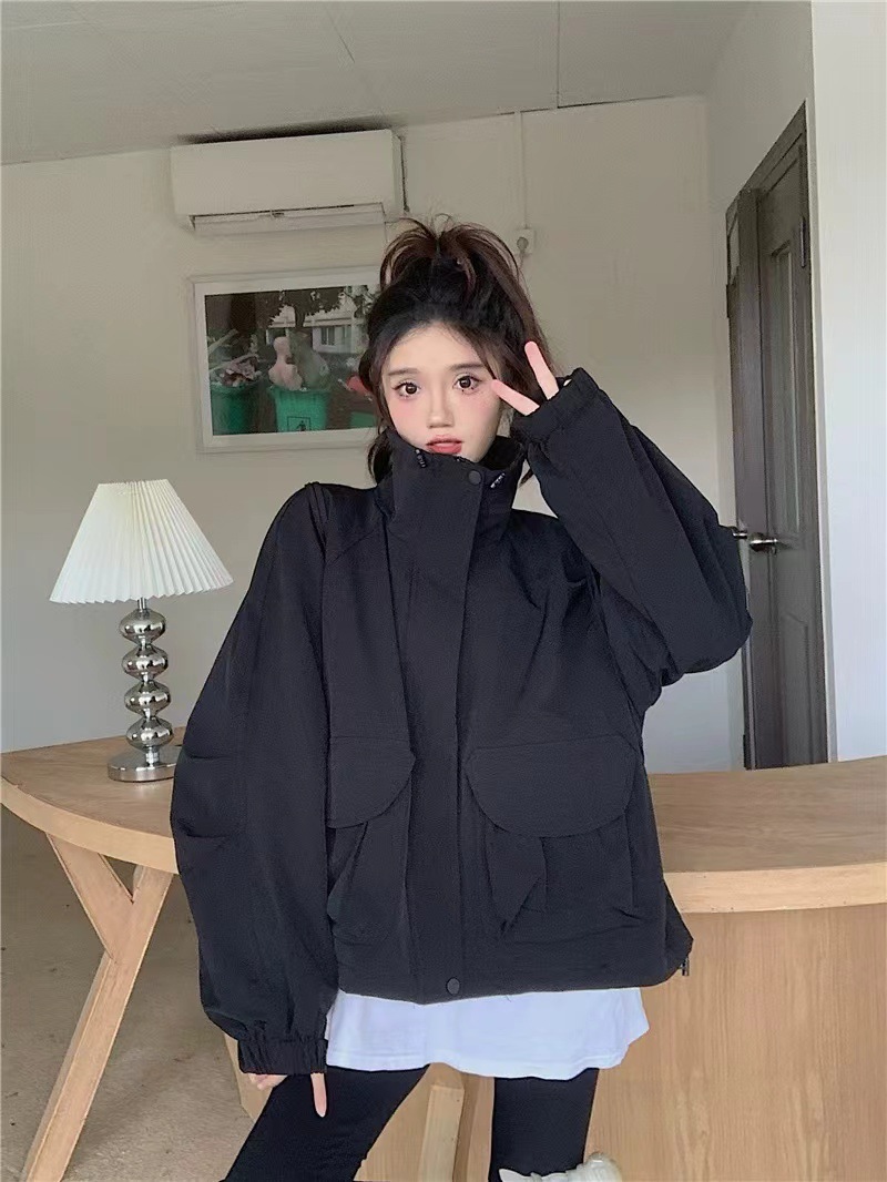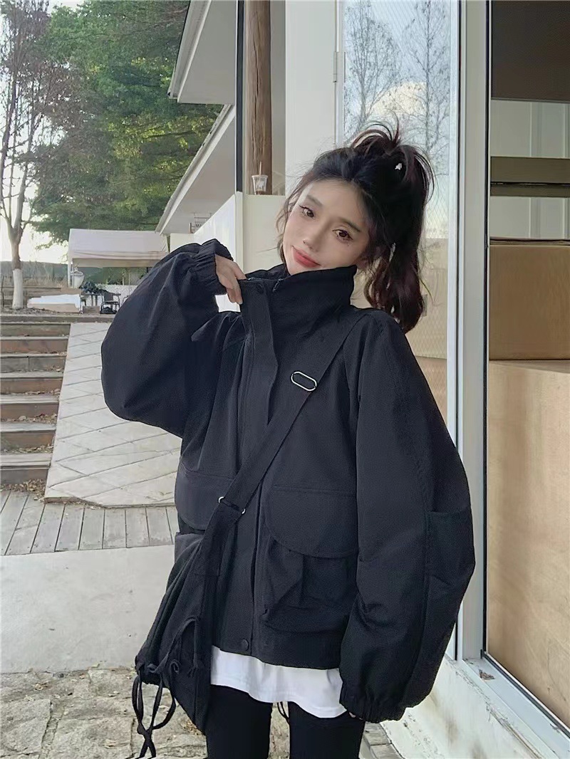 플러스 사이즈 디자인 감각 충전 재킷 여성 가을 통통녀 느슨한 복고풍 작업복 스포츠 캐주얼 재킷 탑
