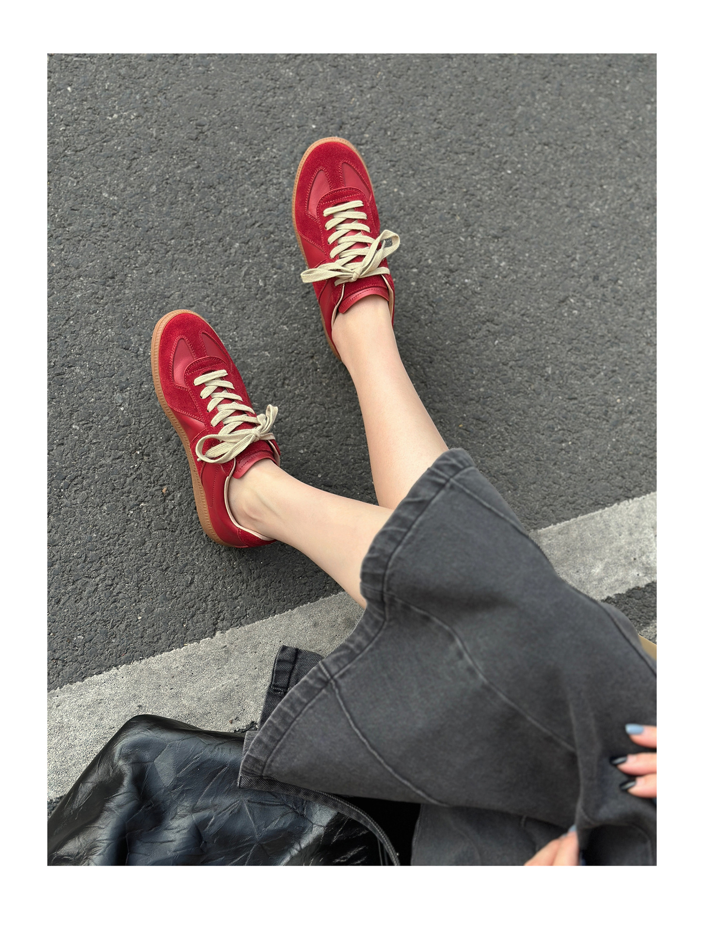 내부 키높이 여성용 신발 천연 가죽 레드 2025 신상 봄 화이트 슈즈 다용도 스포츠 캐주얼 신발 스니커즈