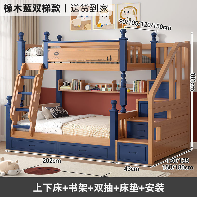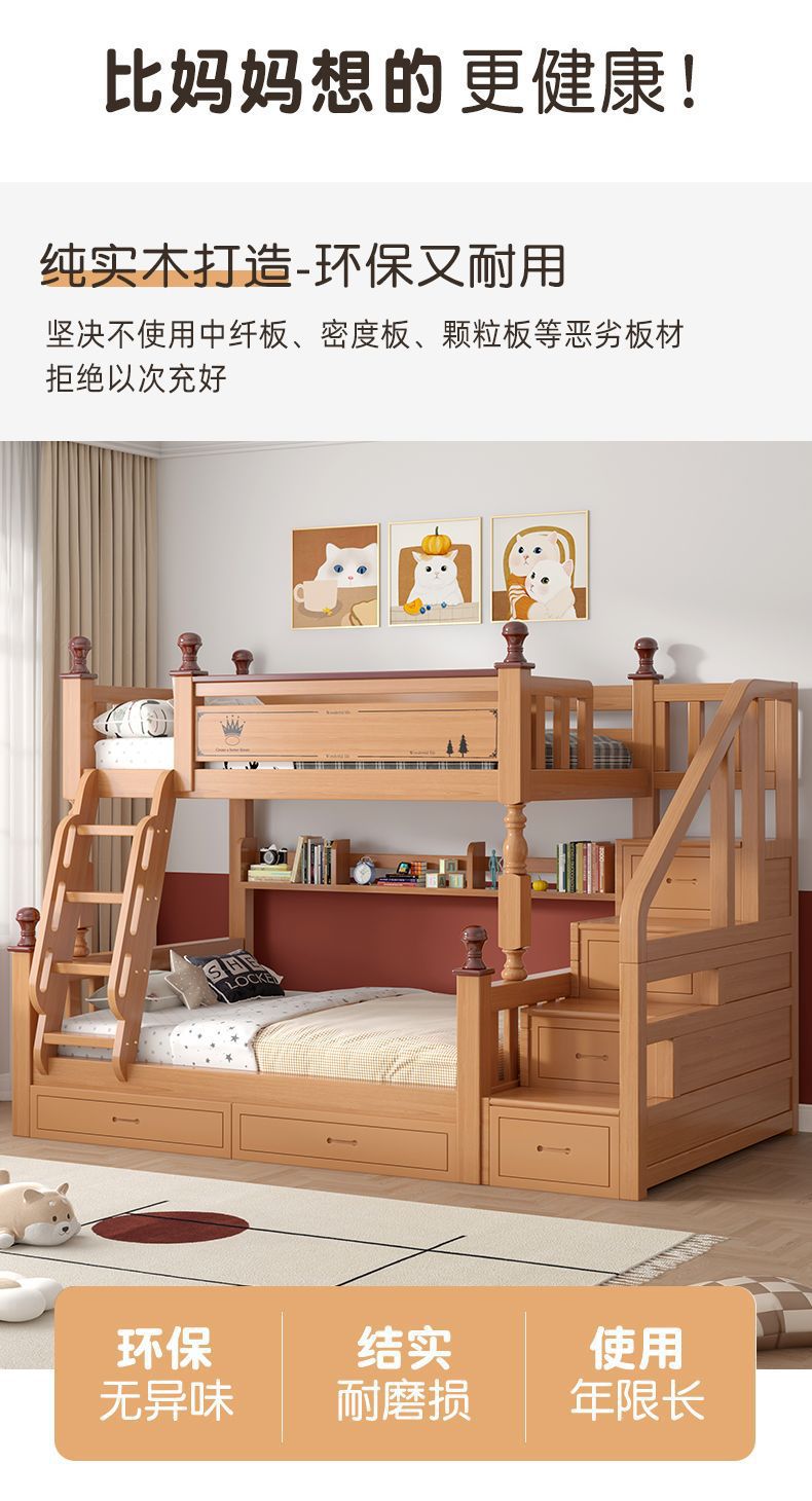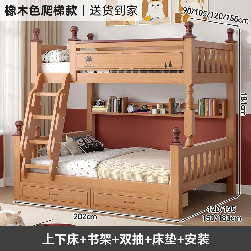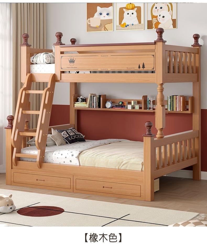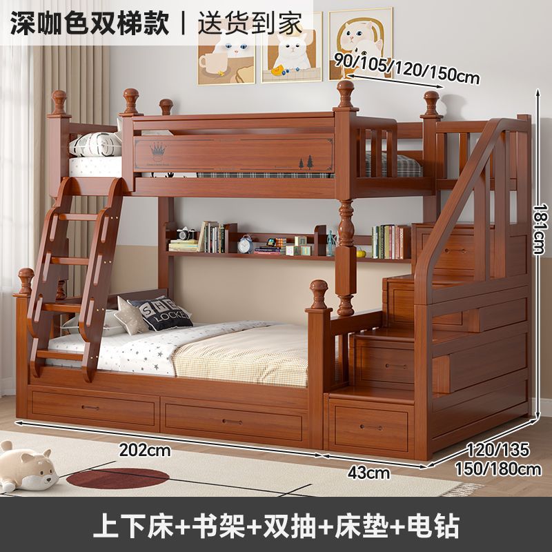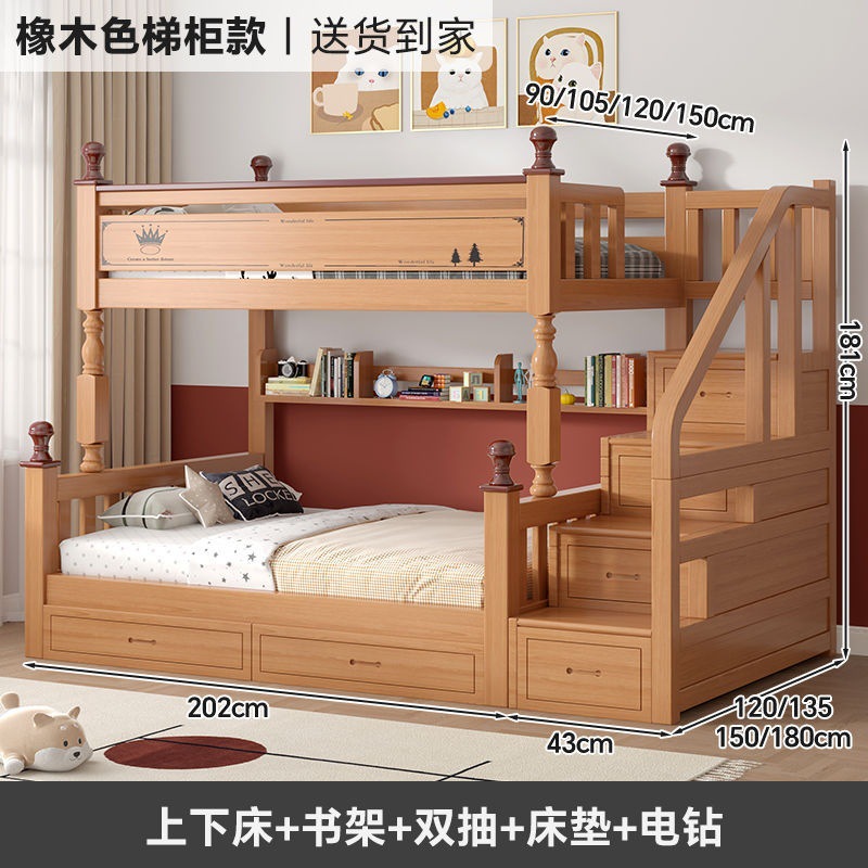 고무 나무 침대 이층 침대 이층 침대 어린이 침대 전체 단단한 나무 더블 침대 두 개의 높고 낮은 침대스토어 가기