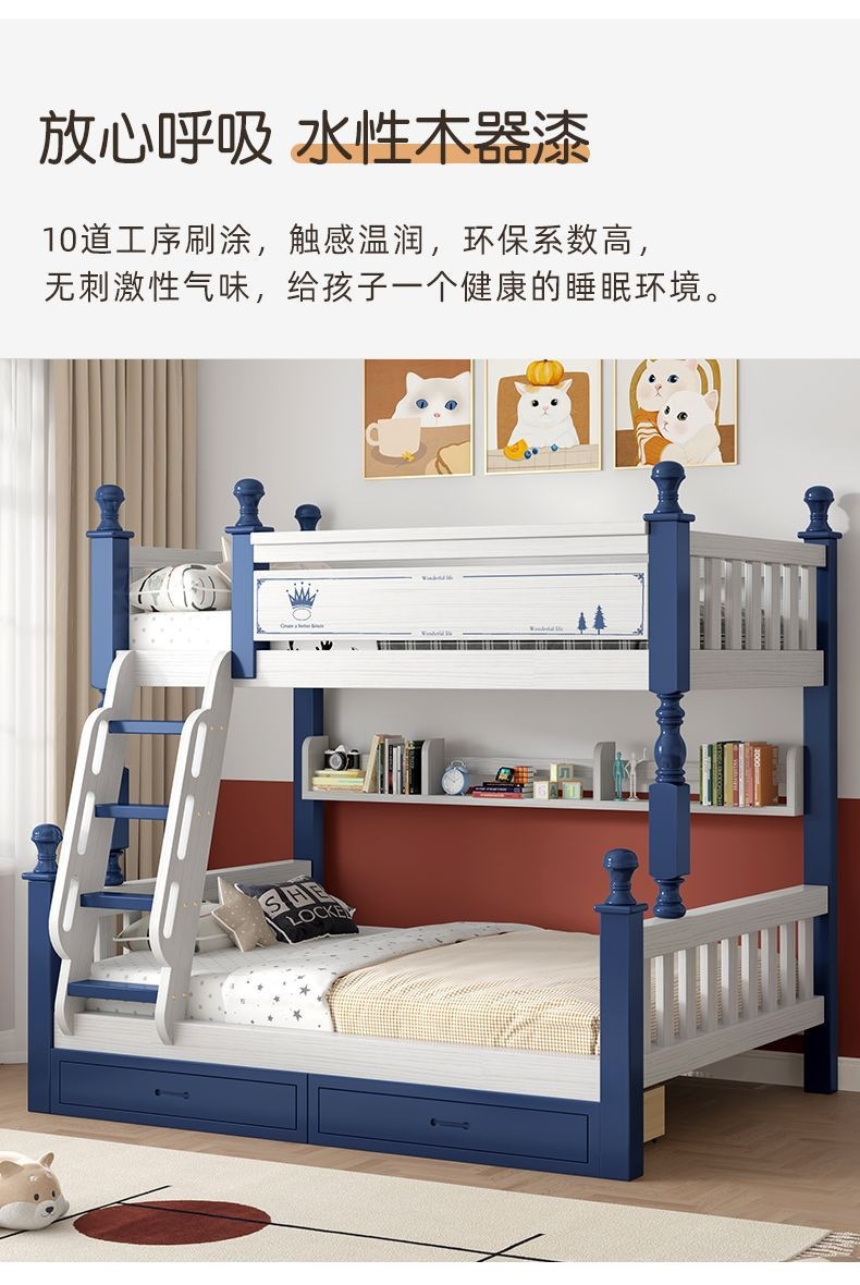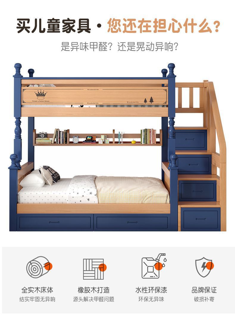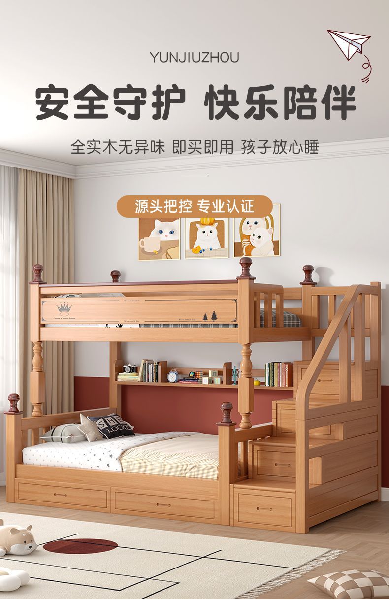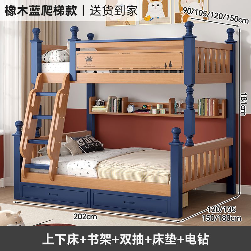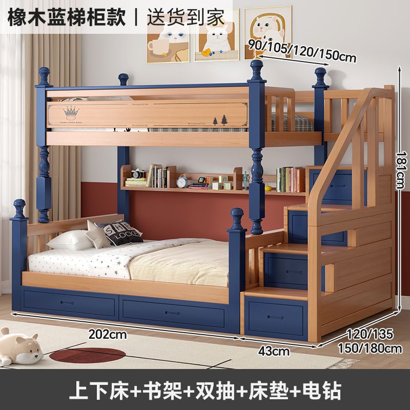 고무 나무 침대 이층 침대 이층 침대 어린이 침대 전체 단단한 나무 더블 침대 두 개의 높고 낮은 침대스토어 가기